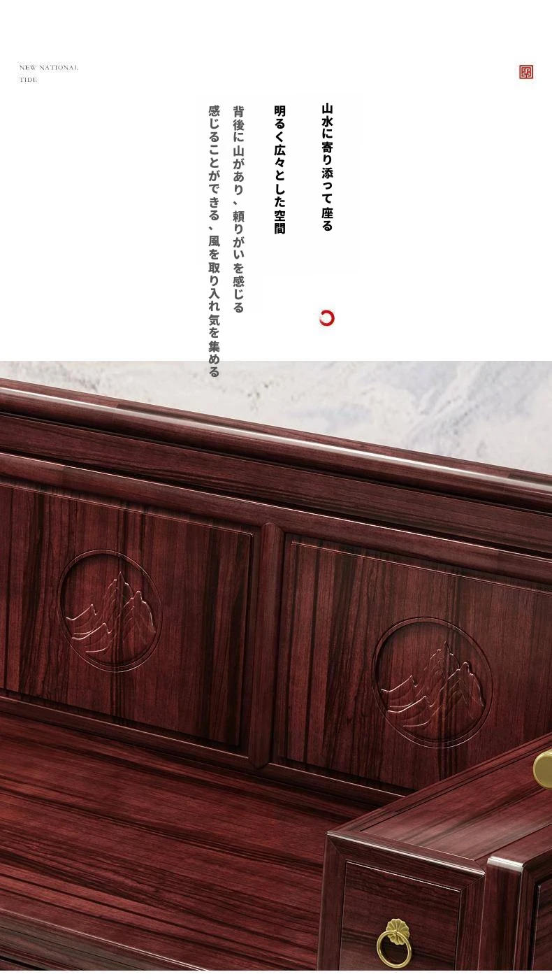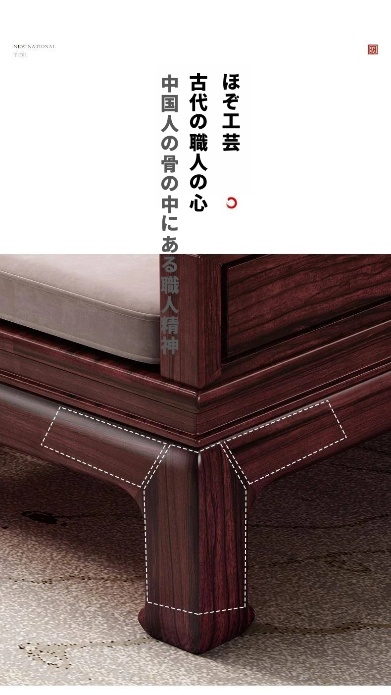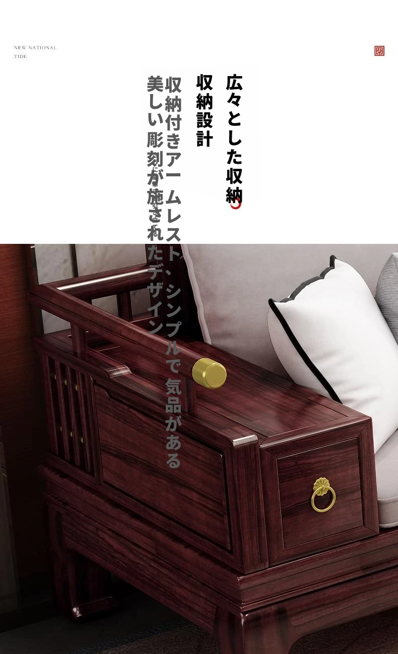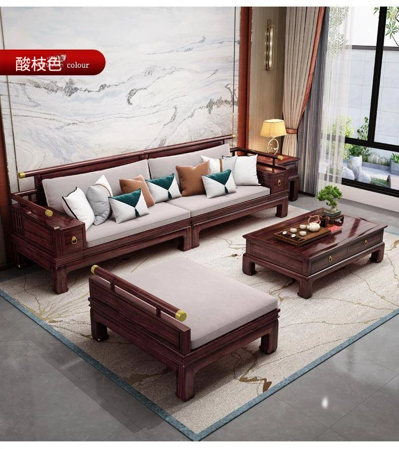 新中式ウッドソファー&ウーキンウッドの貴妃椅子付きコーナー&テーブルセット - モダンな小型住宅に最適なリビング全セット!高級感溢れるデザインで、くつろぎの空間を演出します。