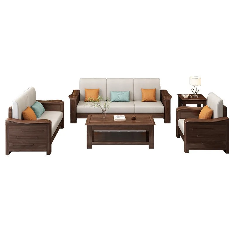 胡桃木の中式モダンリビング用無垢材ソファ1+2+3のセット、全装備の家具、別荘にぴったりな木製ソファ!優雅なデザインで、居心地の良い空間を演出します。