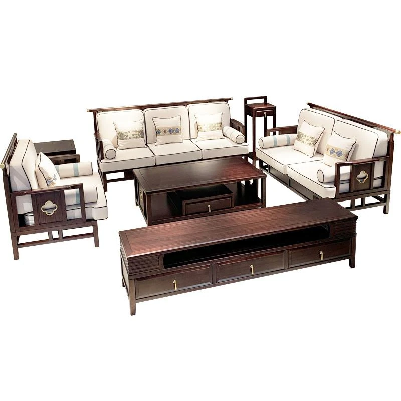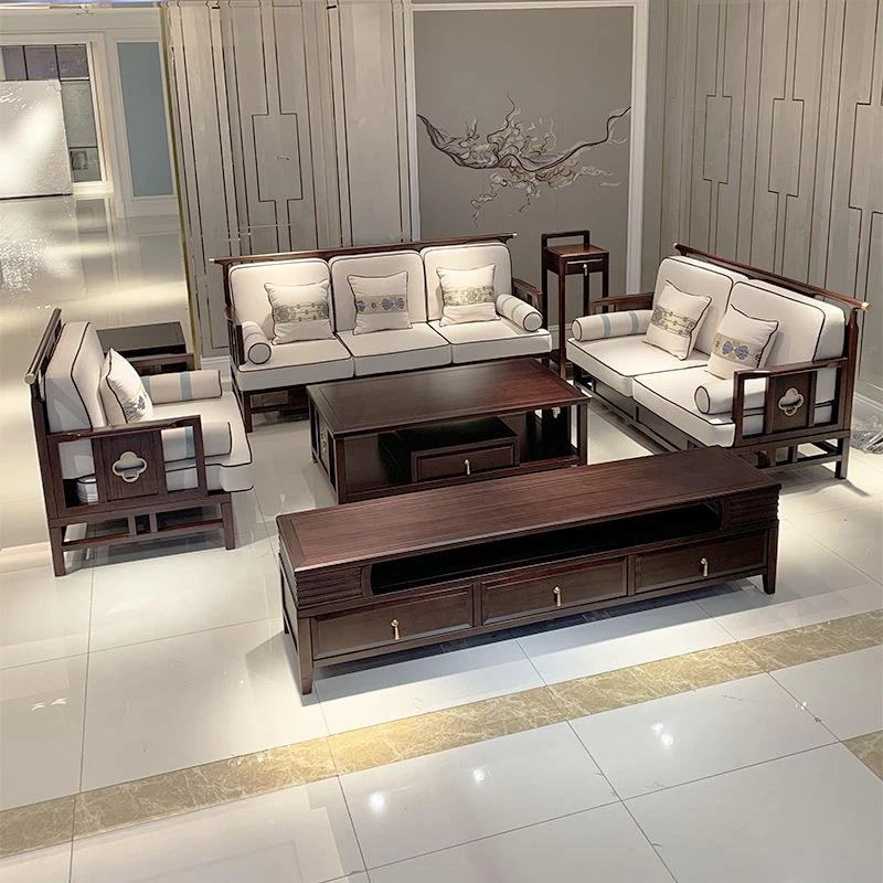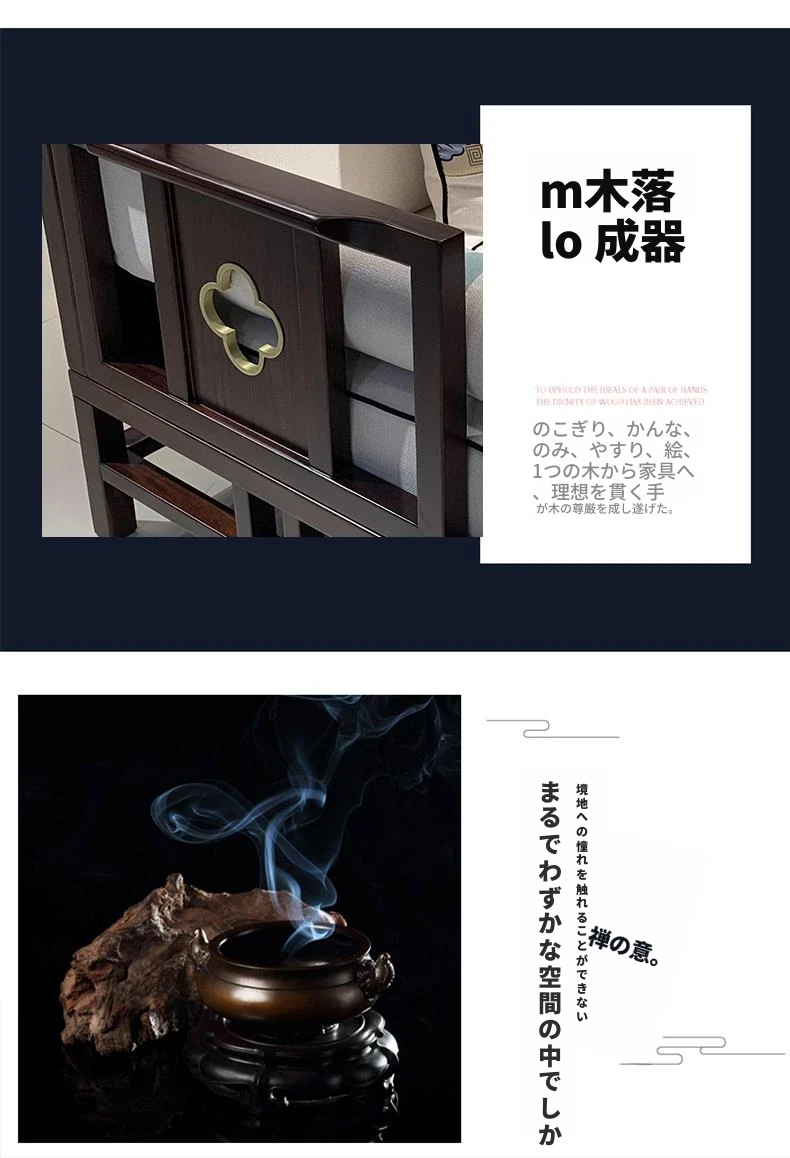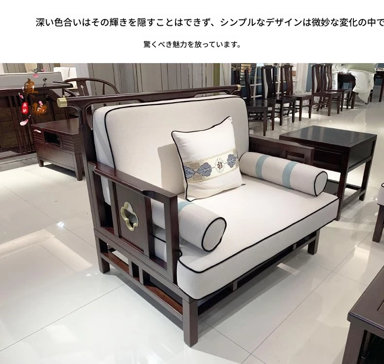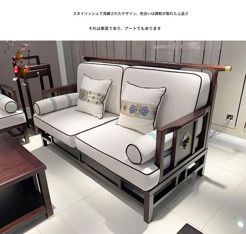 新中式ソファ 黒檀の無垢材を使用した禅の雰囲気漂う布製ソファセット モダンミニマリストスタイルのリビング家具 小型住宅に最適!