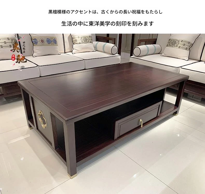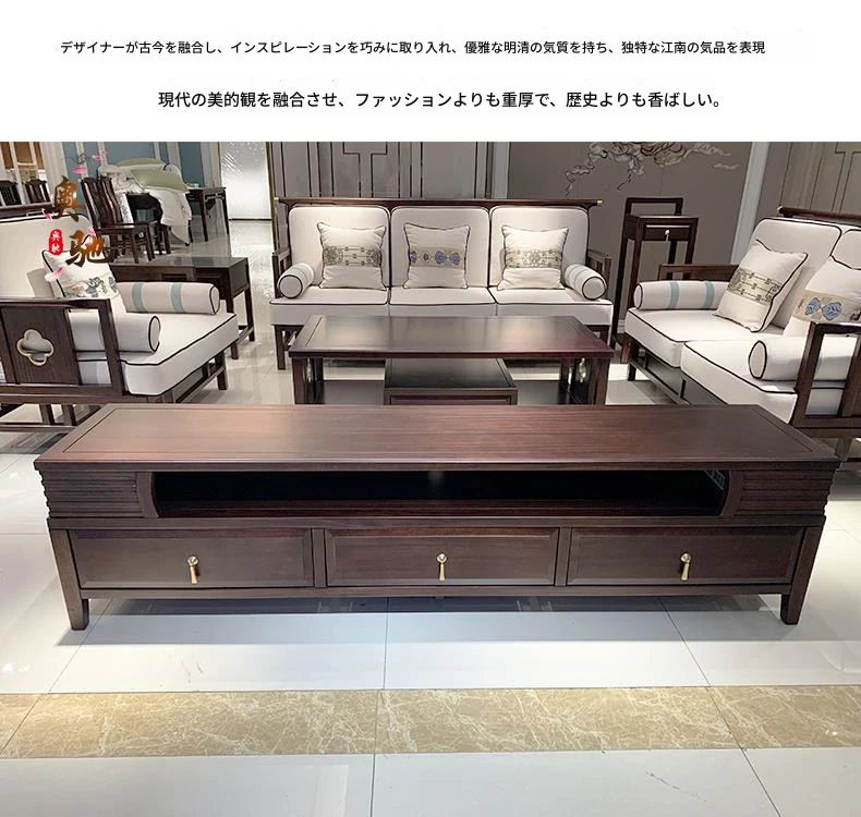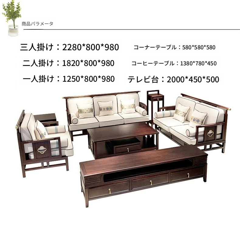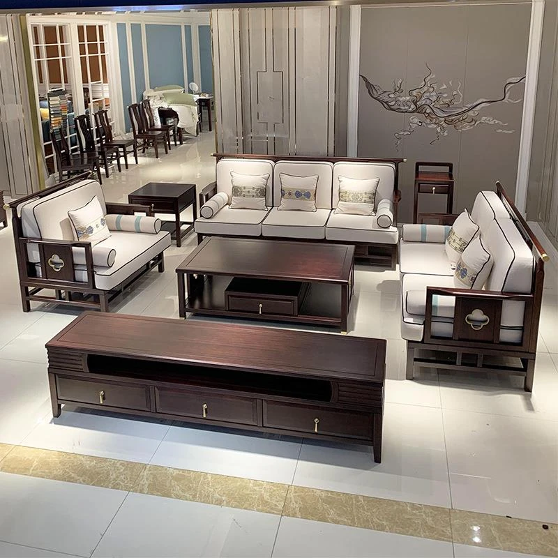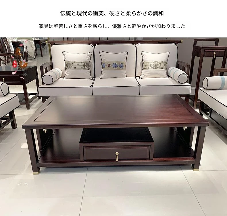 新中式ソファ 黒檀の無垢材を使用した禅の雰囲気漂う布製ソファセット モダンミニマリストスタイルのリビング家具 小型住宅に最適!
