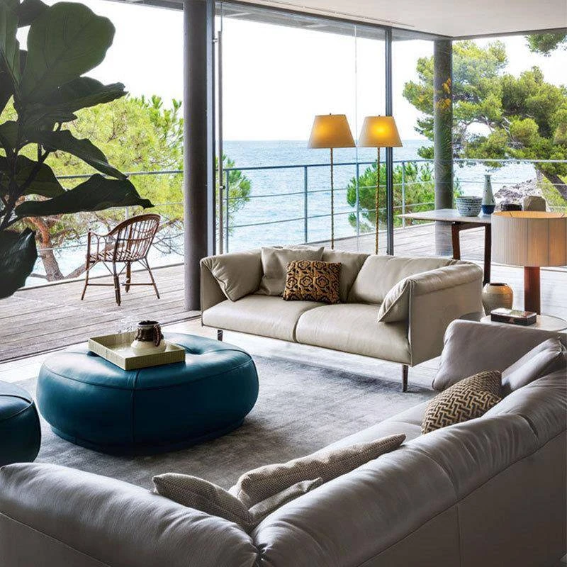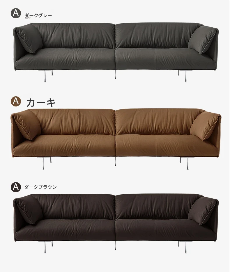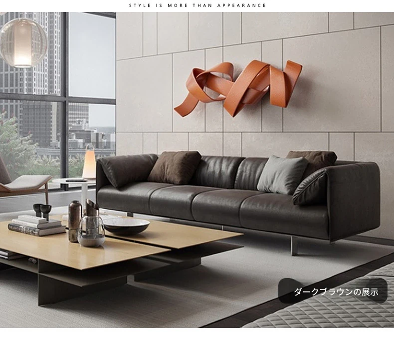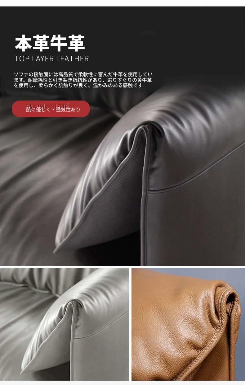 現代的シンプルな319型リビング3人掛け極簡真皮ソファ。軽やかなラグジュアリー感あふれる小型アパートに最適な、贅沢な牛革使用のスタイリッシュなデザイン!