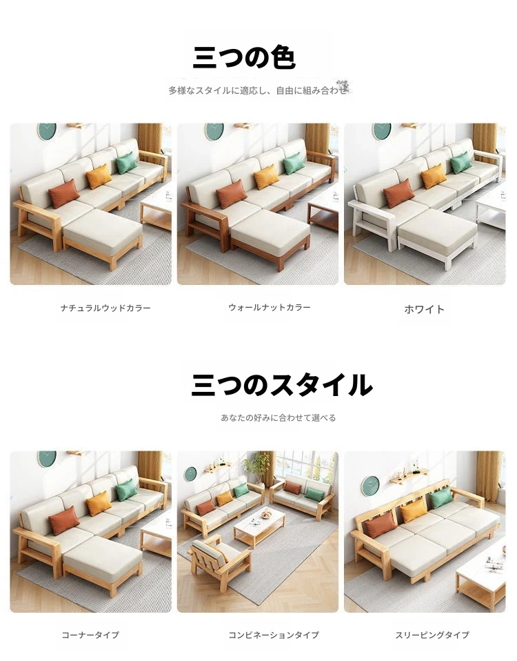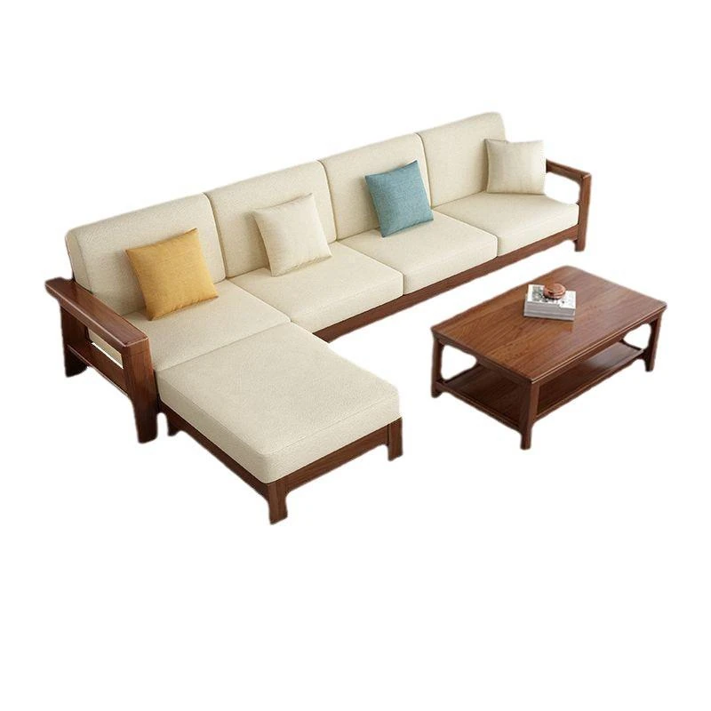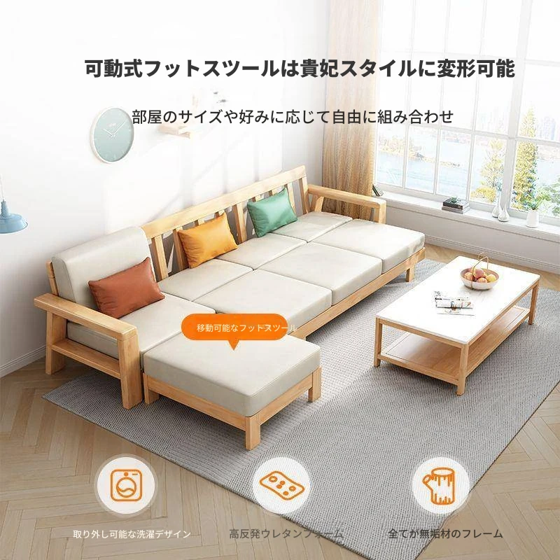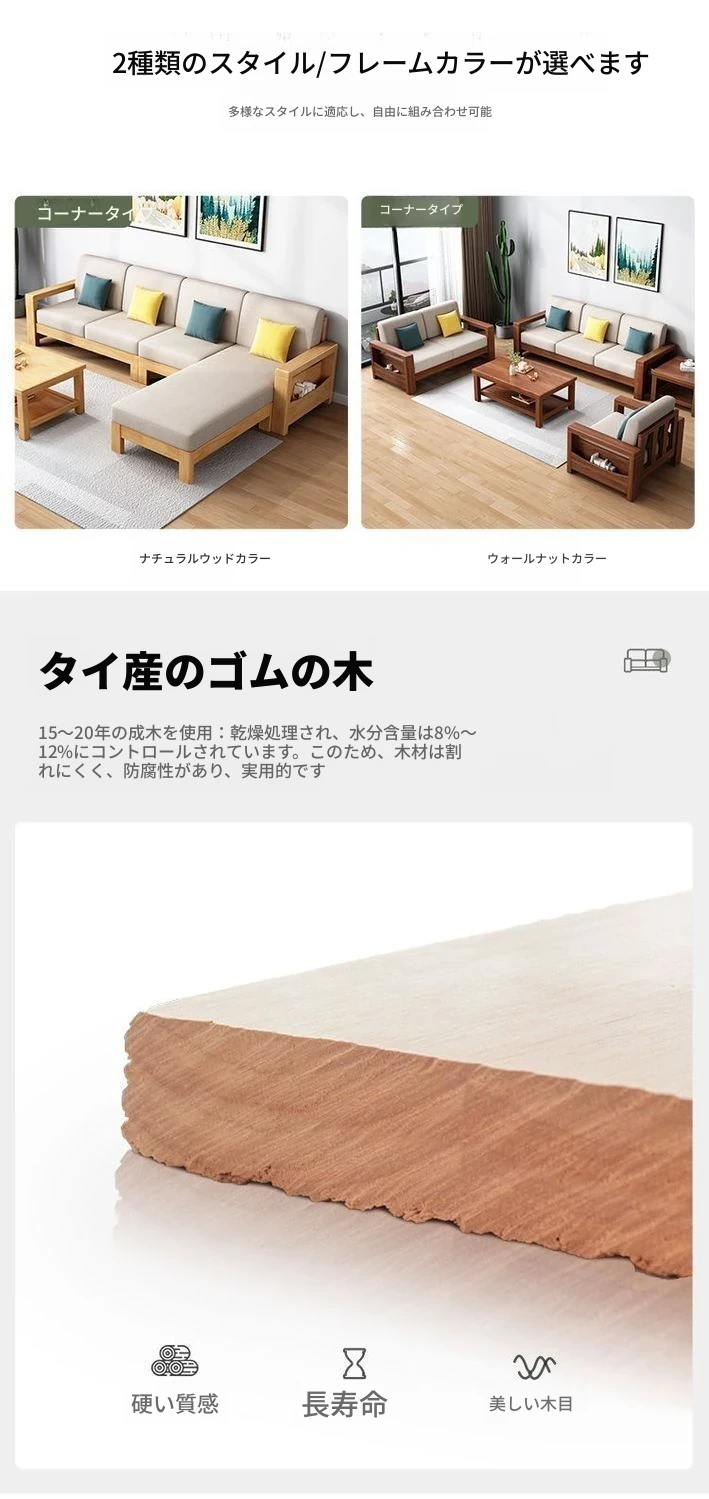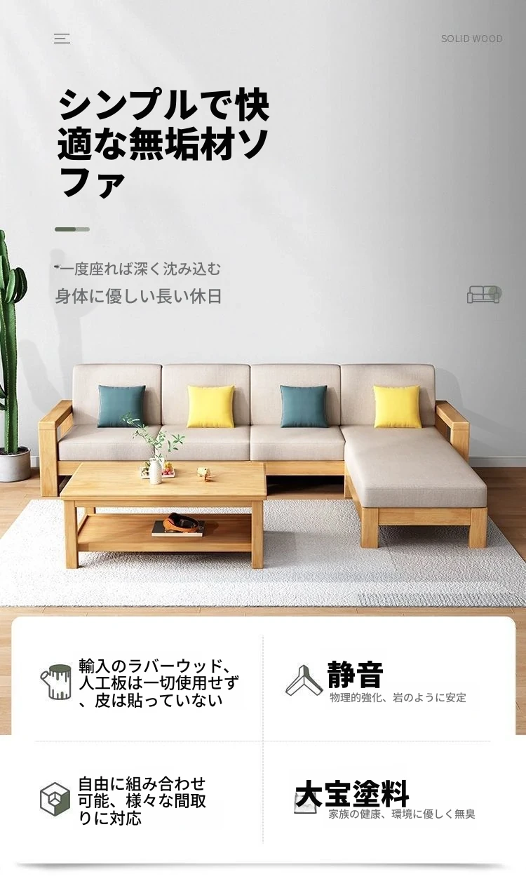 全木製モダンリビングソファセット|シンプルでスタイリッシュなデザイン!ソファベッドとしても使える小型アパート向け、布製で軽やかな高級感漂う新中式スタイル。