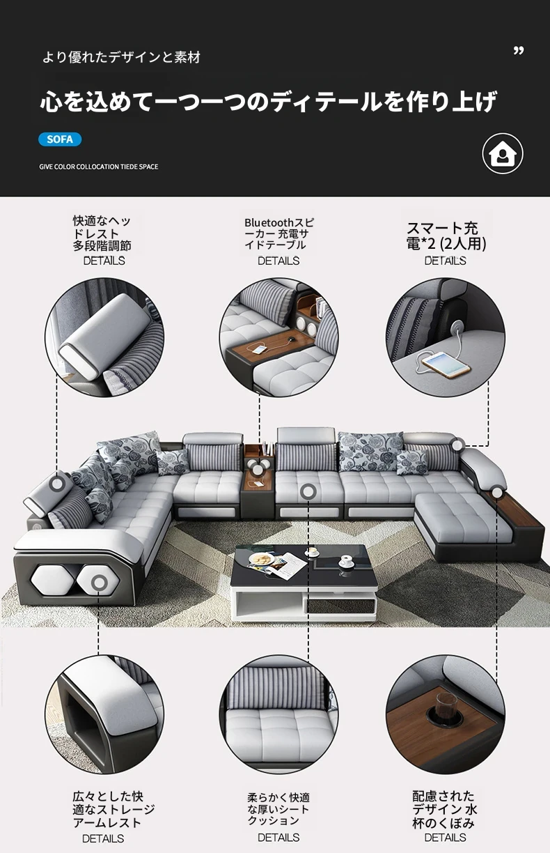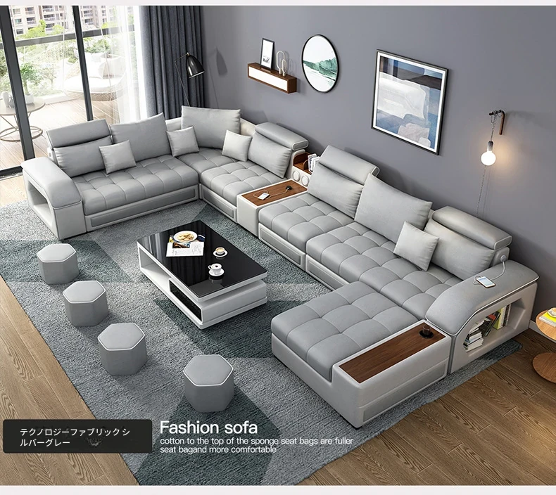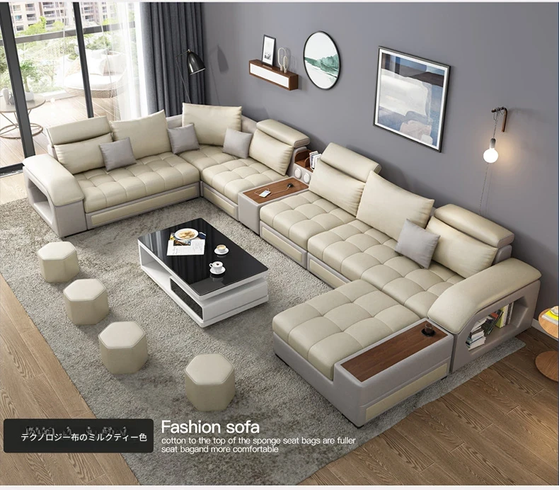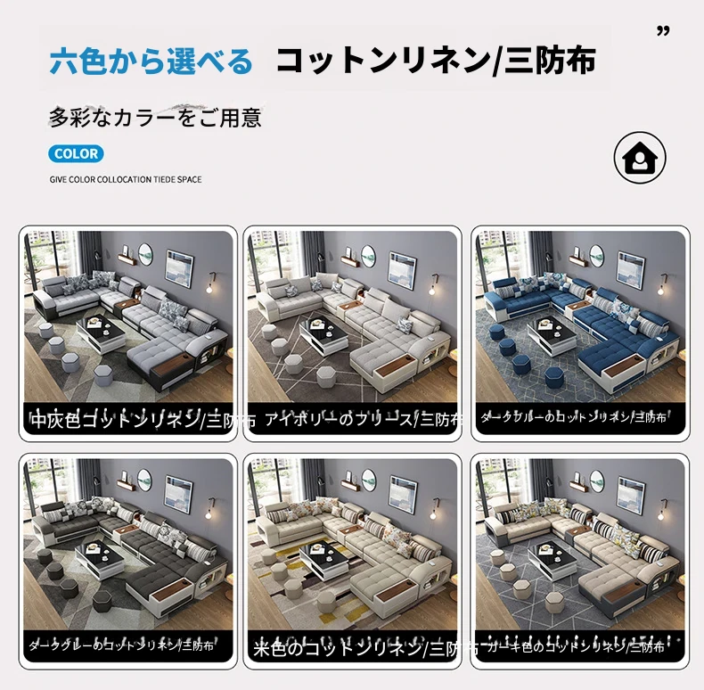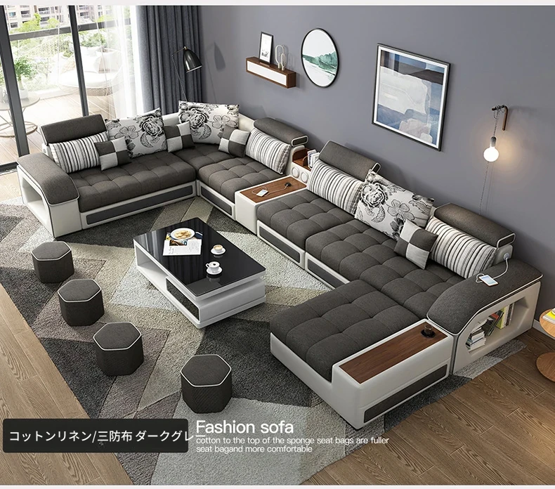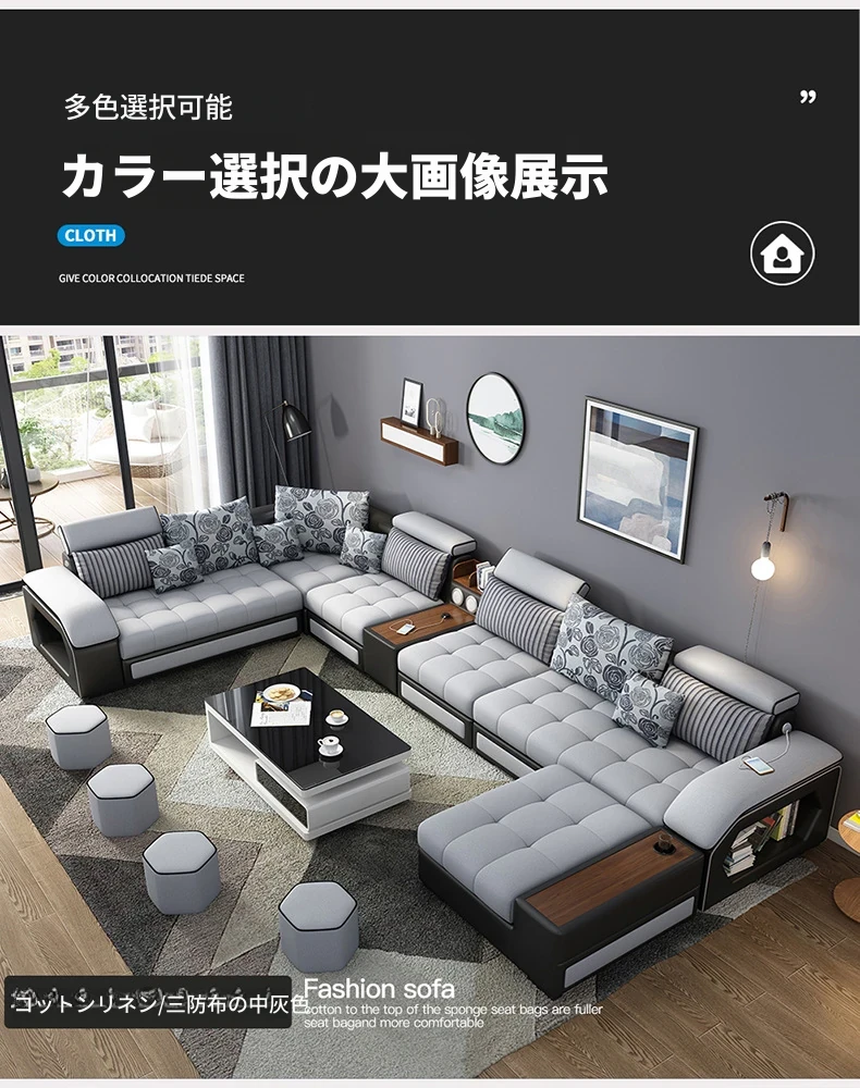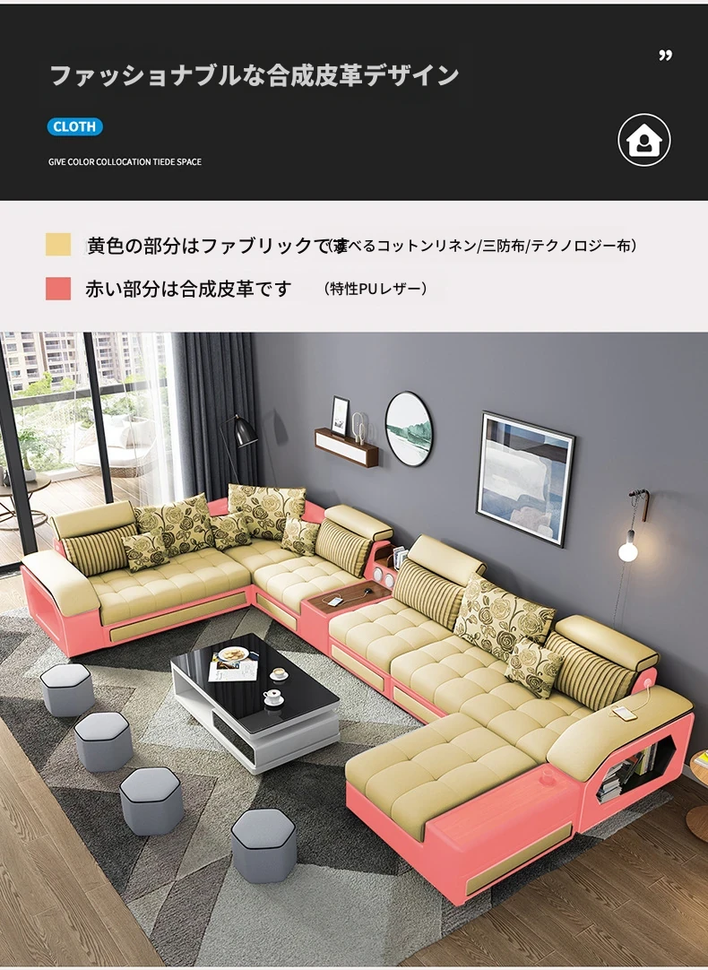 シンプルでモダンなラテックステクスチャー布製ソファセット - 洗えるカバー付き、広々としたU字型デザインで、リビングルームに最適なスタイリッシュな家具!
