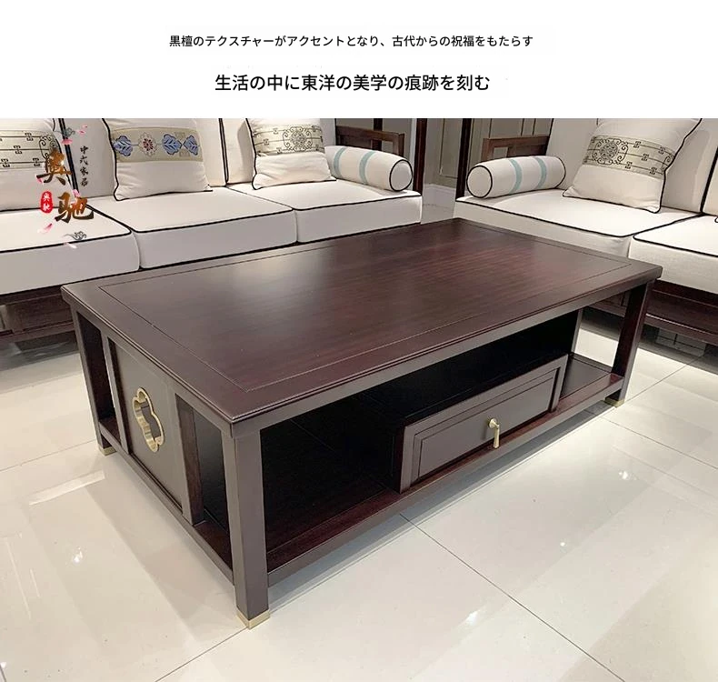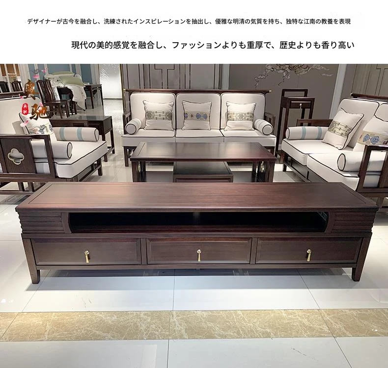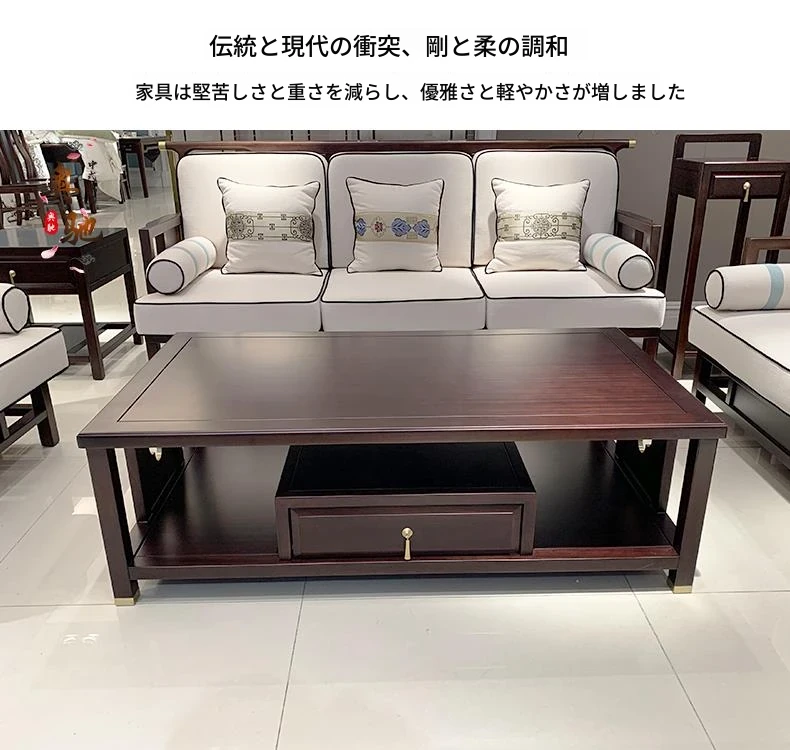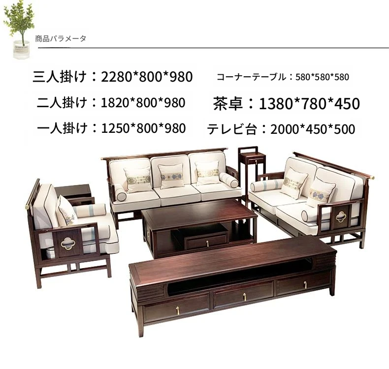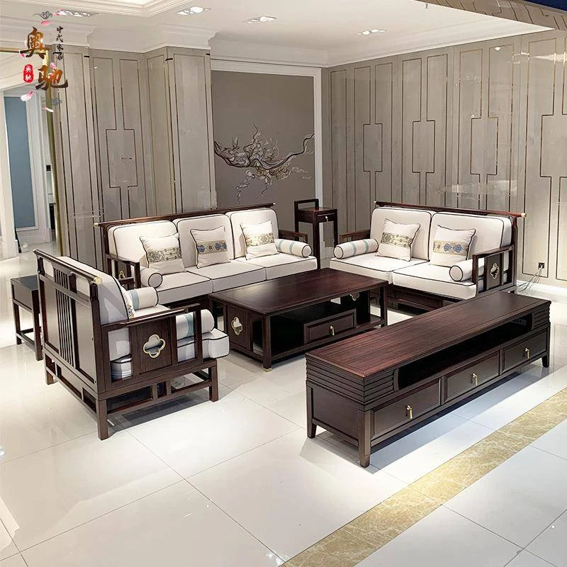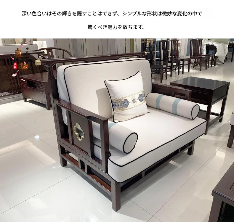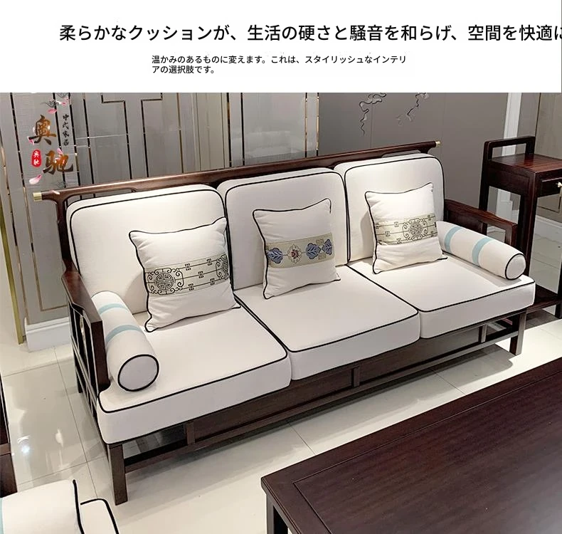 新中式スタイルの黒檀無垢材製禅風布張りソファセット - モダンなミニマリズムを追求した小型リビングに最適な家具!心地よいデザインで、あなたの空間に穏やかなひとときを。