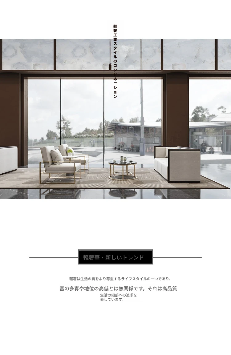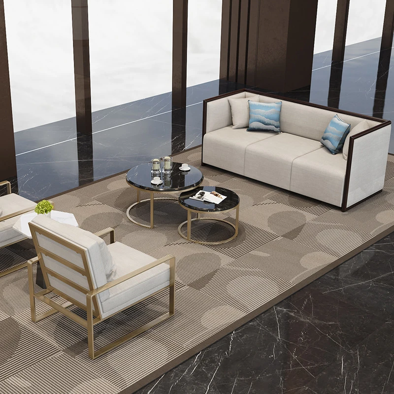モダンミニマリストの談話ソファ|不動産販売所やホテルの受付に最適なリラックス三人掛けセット|スタイリッシュなデザインでお客様をお迎えします!