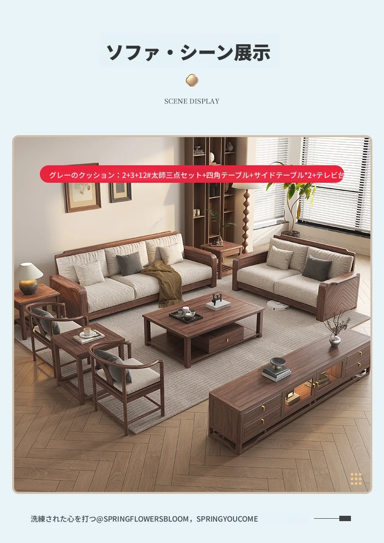 【6001】2+3+コーヒーテーブル+角テーブル*2+主席椅子3点セット+テレビ台