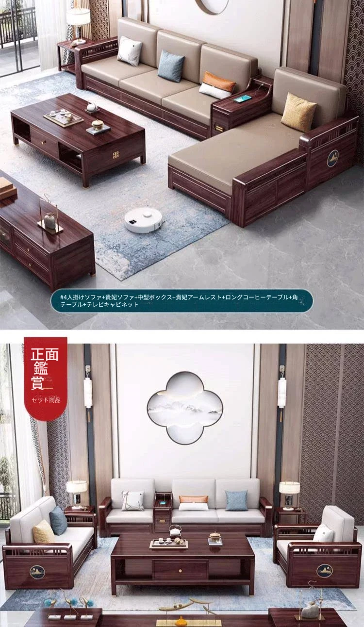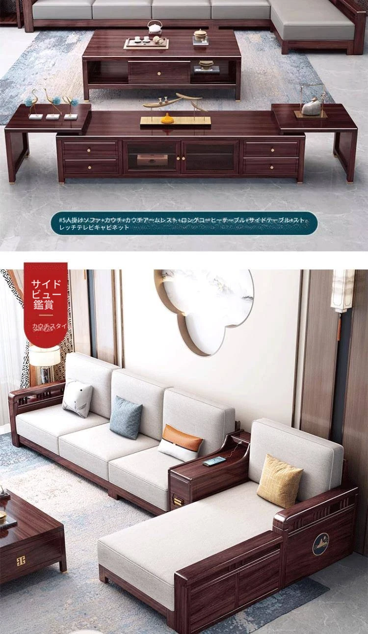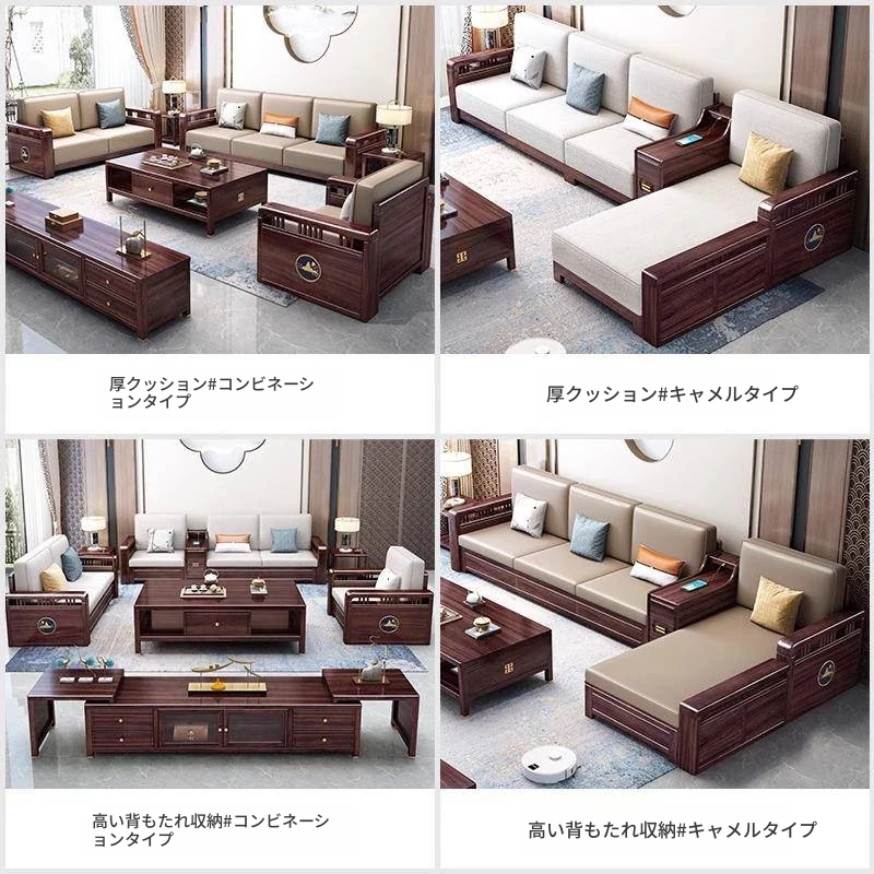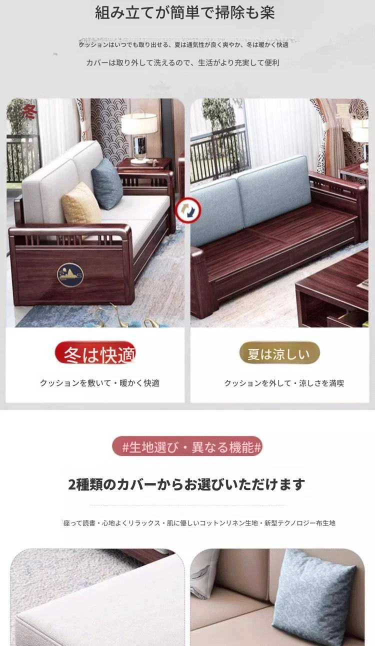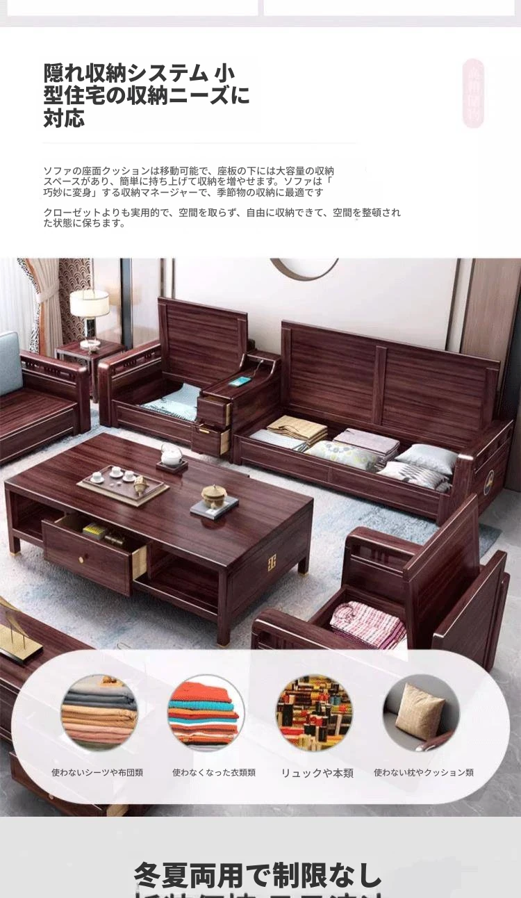 新しい中式ウッ金木製ソファセット - モダンでシンプル、冬夏兼用の収納付きコーナーリビング家具。心地よい空間を演出し、スタイリッシュなリビングを実現!