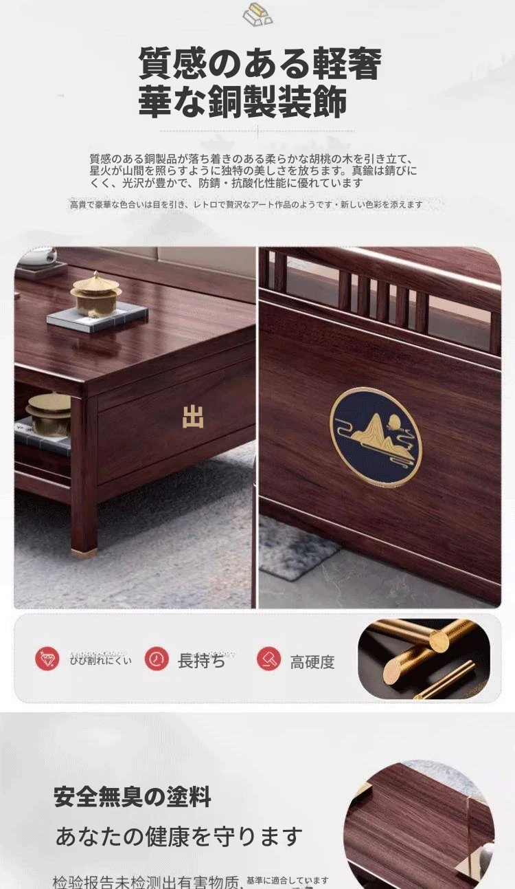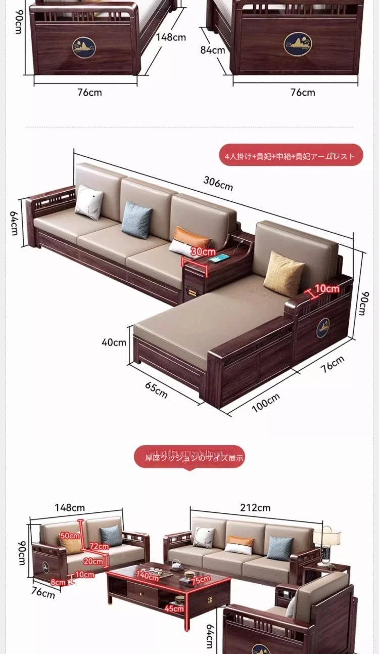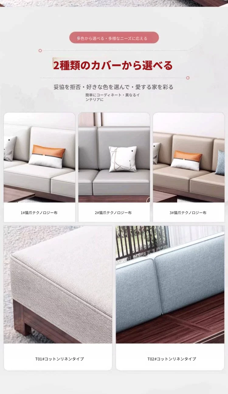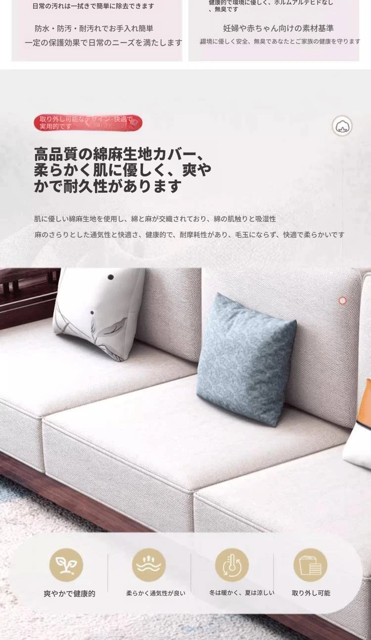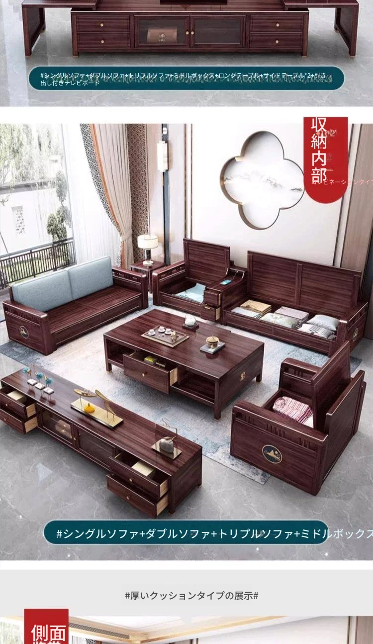 新しい中式ウッ金木製ソファセット - モダンでシンプル、冬夏兼用の収納付きコーナーリビング家具。心地よい空間を演出し、スタイリッシュなリビングを実現!