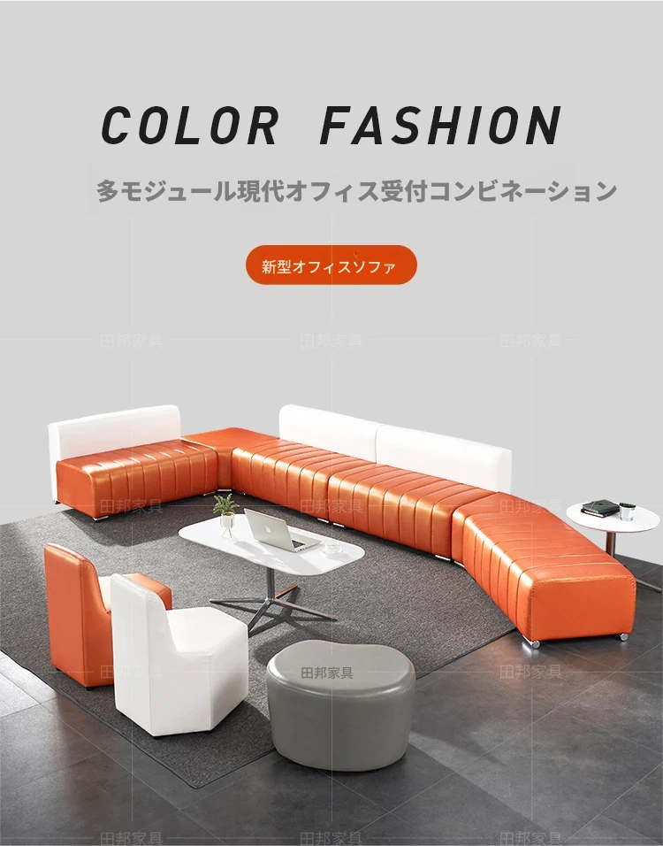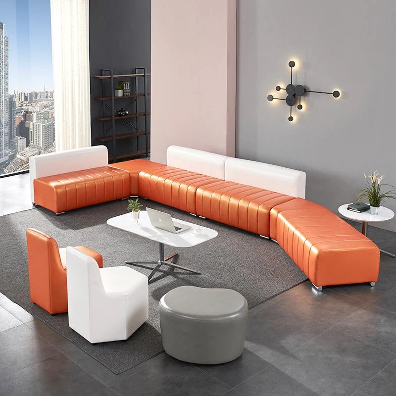モダンオフィス用レザーソファ!シンプルでスタイリッシュなデザインの応接セット、休憩エリアに最適。クリエイティブな異形テーブル付きで、快適なひとときを演出します。