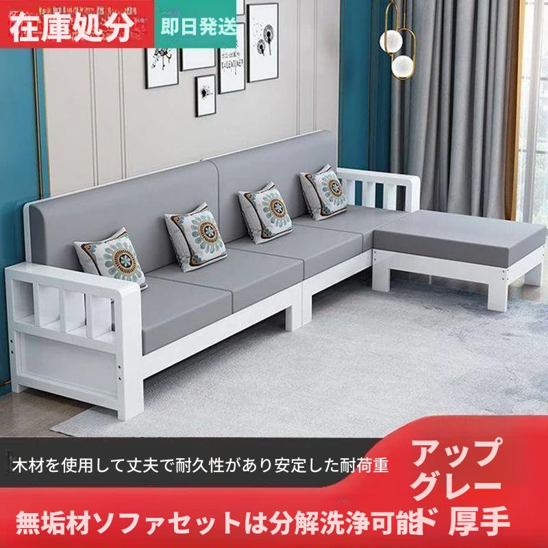 モダンな中華スタイルの無垢材ソファセット - 小型リビングに最適なシンプルで経済的な3人掛けソファ。快適な座り心地を実現し、あなたの居間をスタイリッシュに演出します!