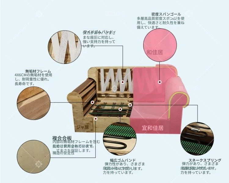 北欧スタイルの全木製ソファセット - シンプルでモダンなデザイン、コンパクトなリビングに最適な木とファブリックの融合!和風のデイベッドソファで、心地よい空間を実現します。