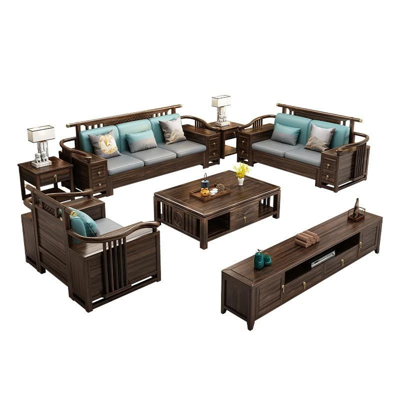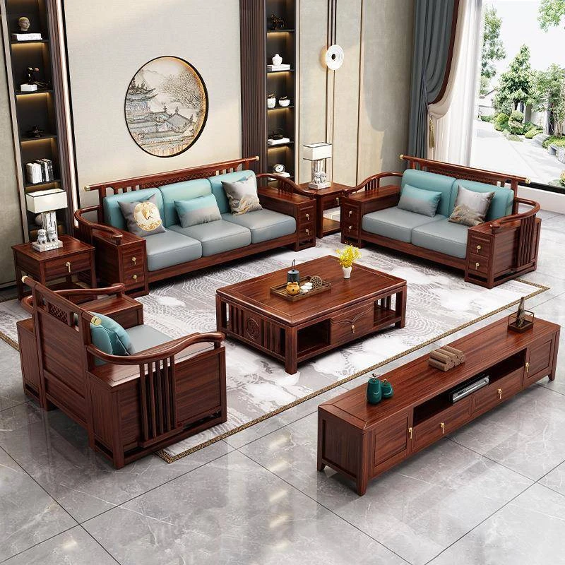 新中式ウッ金木の実木製ファブリック606#ソファ - 高級感溢れるリビングにぴったりのサイズ展開!豪華な貴妃スタイルで、洗練された空間を演出します。