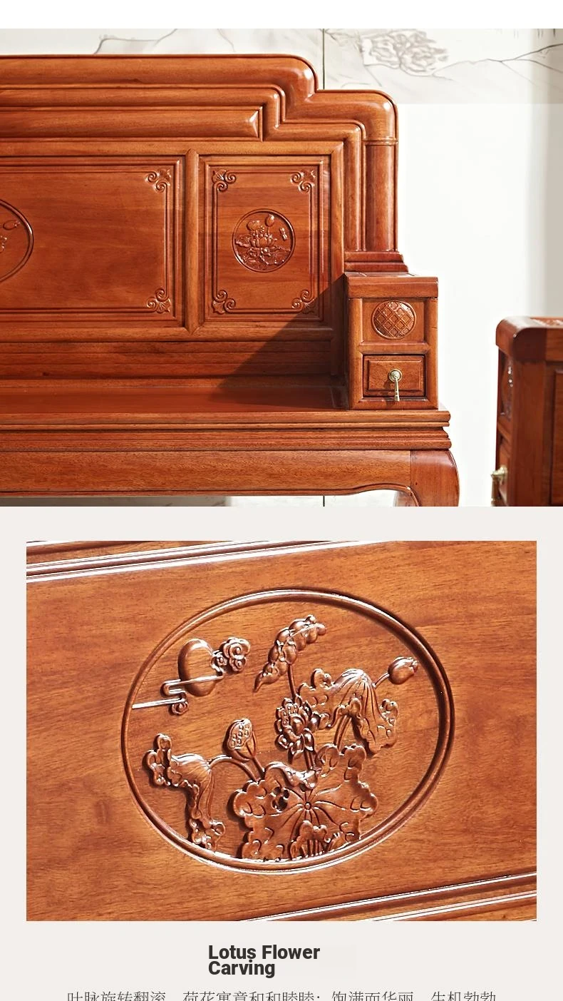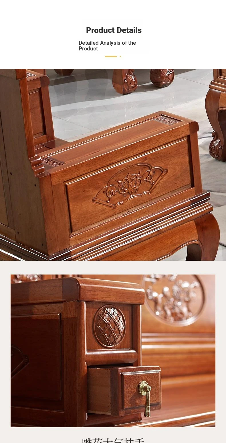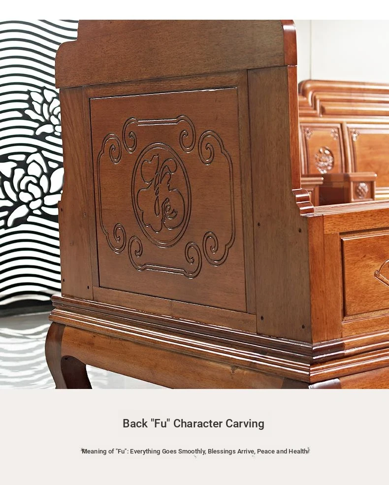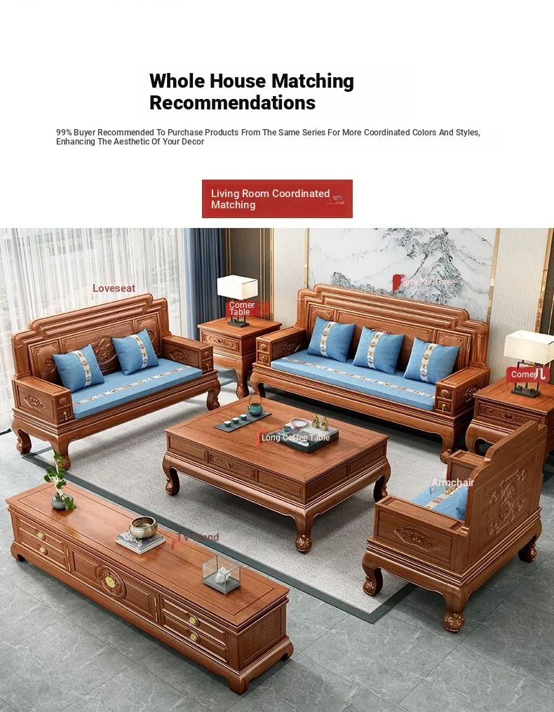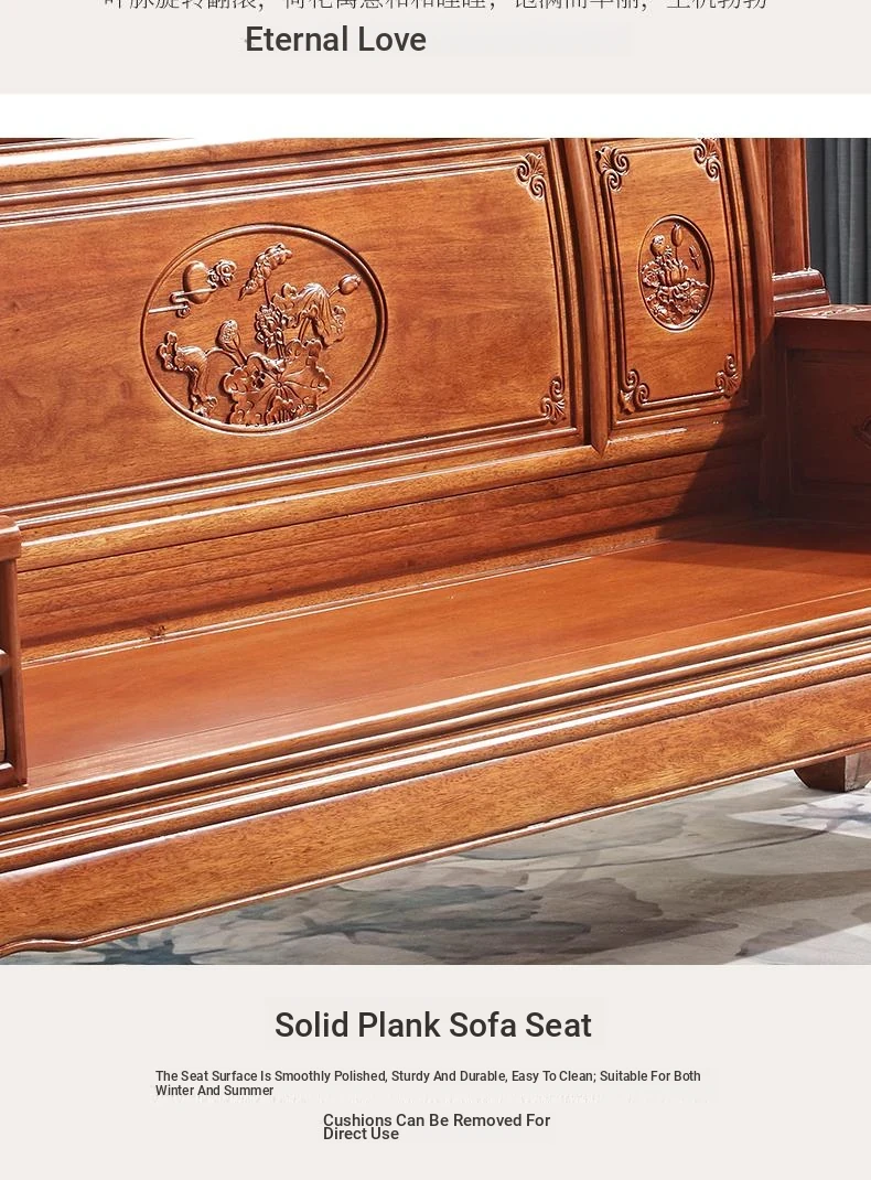 New Chinese Style Golden Pear Wood Fully Assembled Mortise and Tenon Structure Dual-Use Solid Wood Sofa with Carved Pineapple Pattern for Living Room Furniture