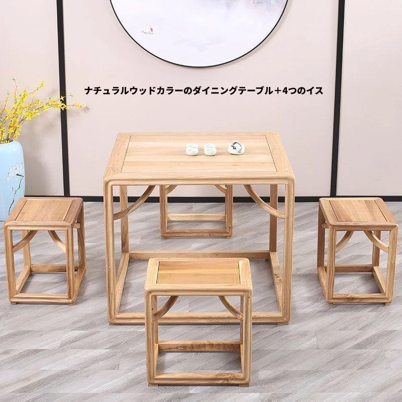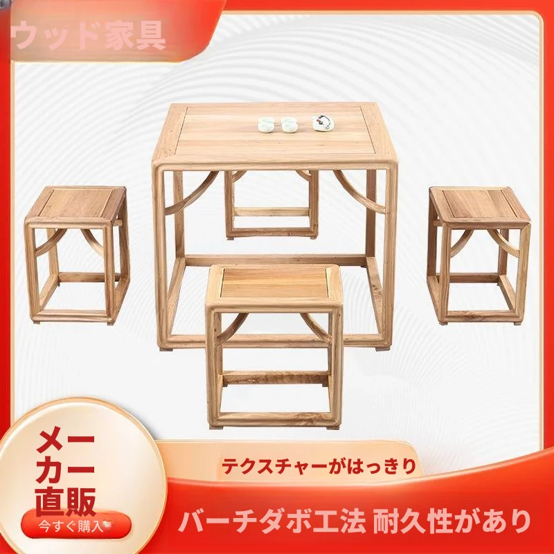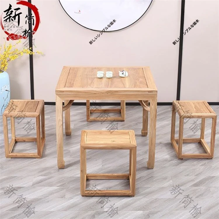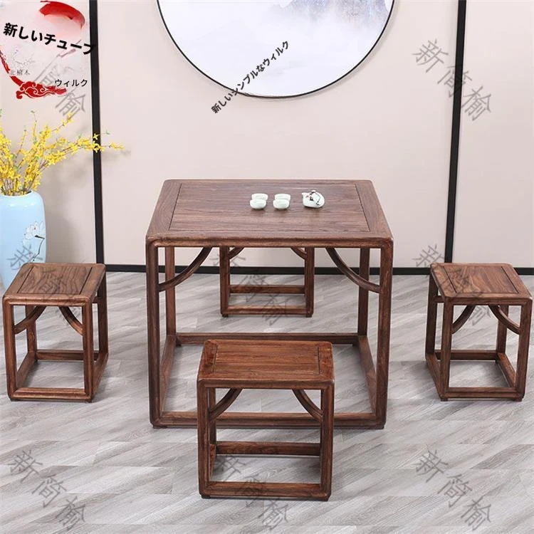 新中式デザインの老榆木製スクエアテーブル - 伝統的な茶卓やダイニングテーブル、ゲームテーブルとしても最適!高品質の無垢材を使用したアンティーク風八仙テーブルで、優雅なひとときを演出します。