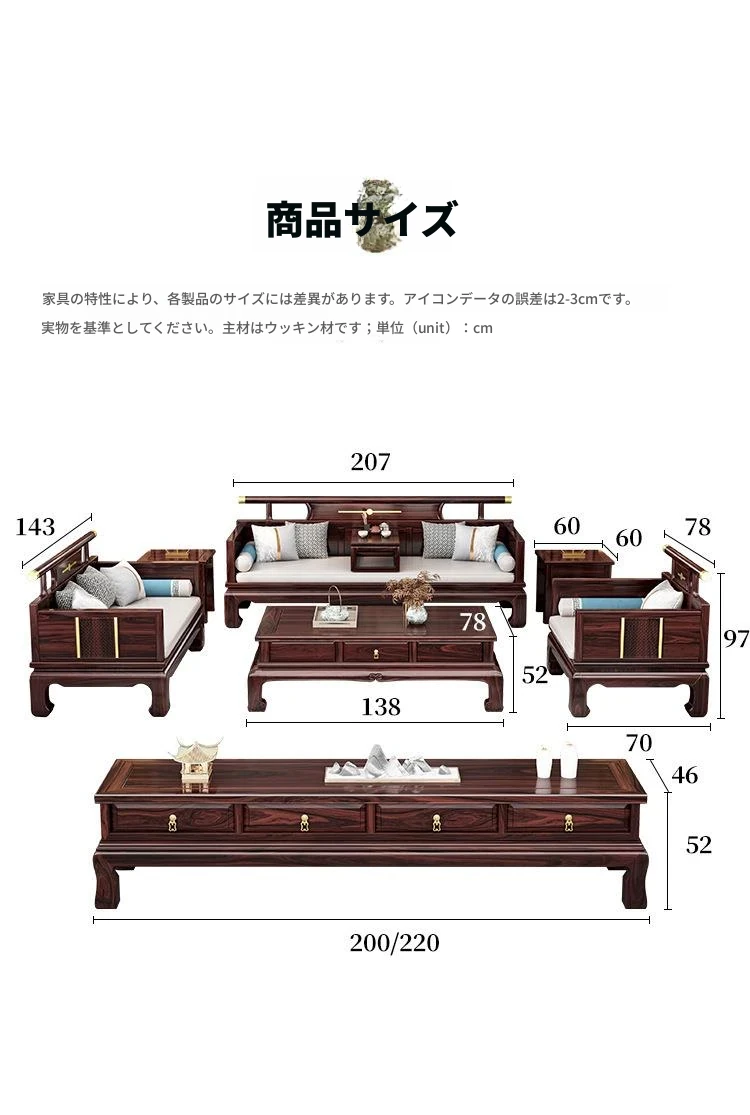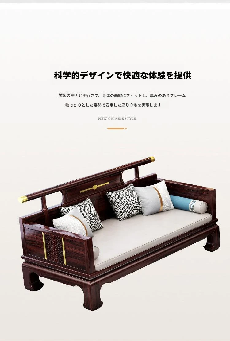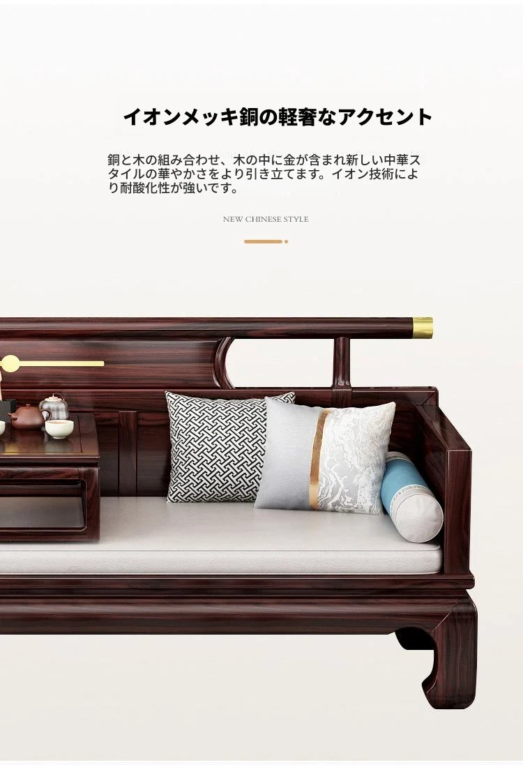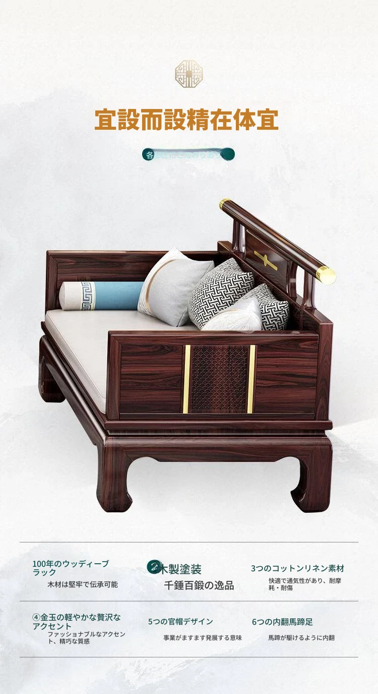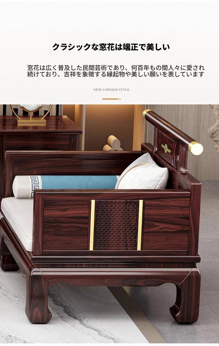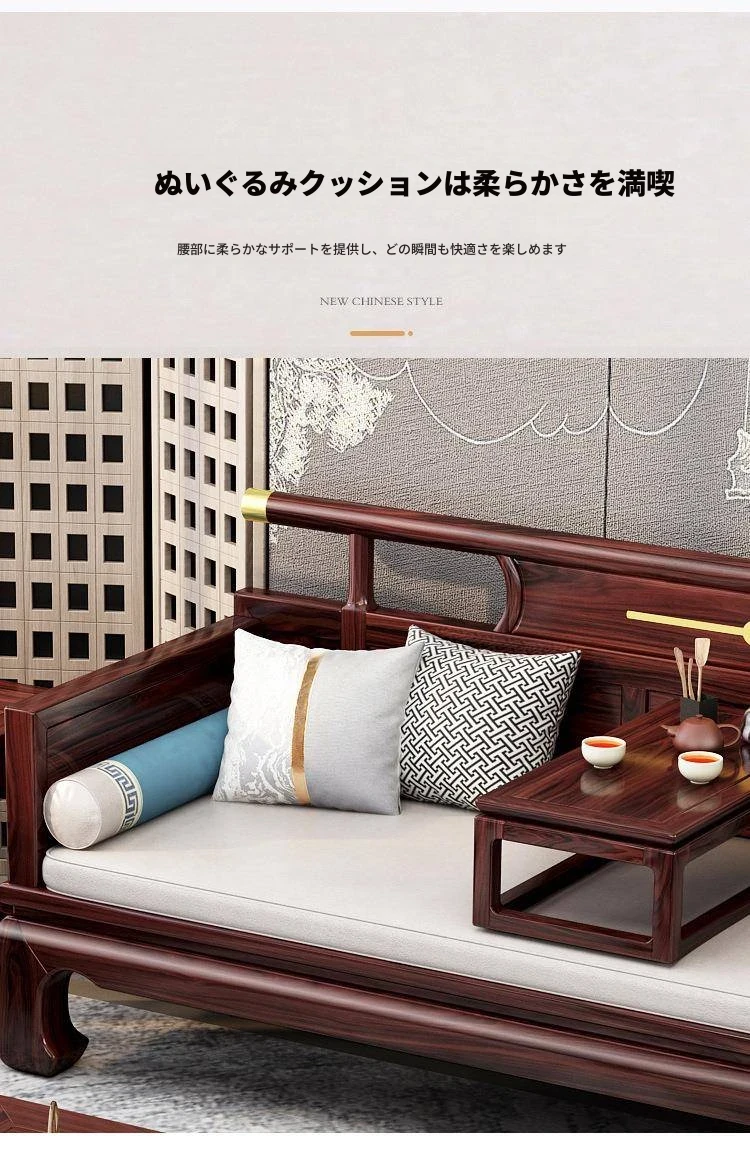 新中式ウッドブラックソファー 冬夏兼用のコンビネーション アンティーク彫刻 小型住宅向け フルオーク材のリビングルーム用フルセット家具