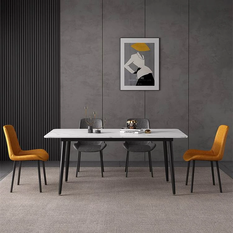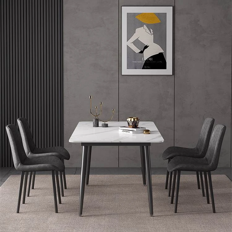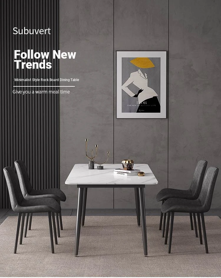 Nordic Minimalist Rock Slab Dining Table and Chair Set – Compact Luxury Rectangular Modern Simple Home Dining Table for Small Spaces