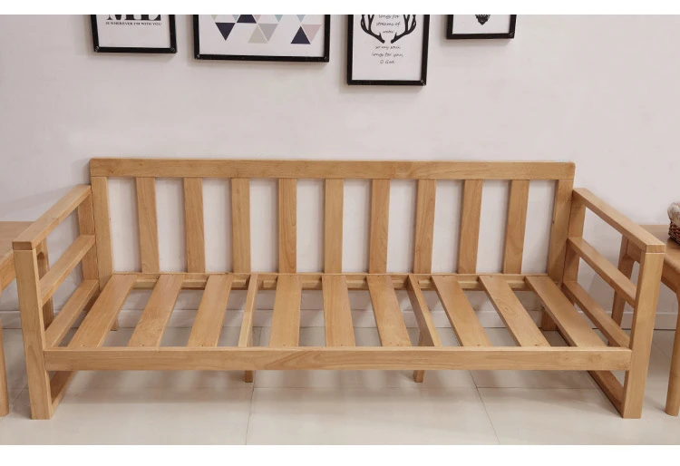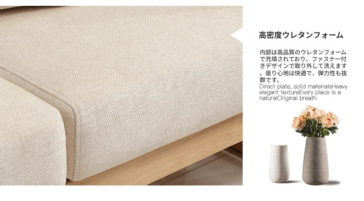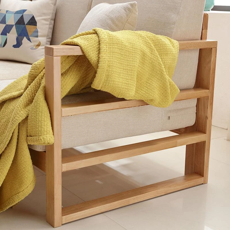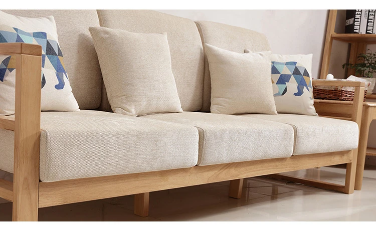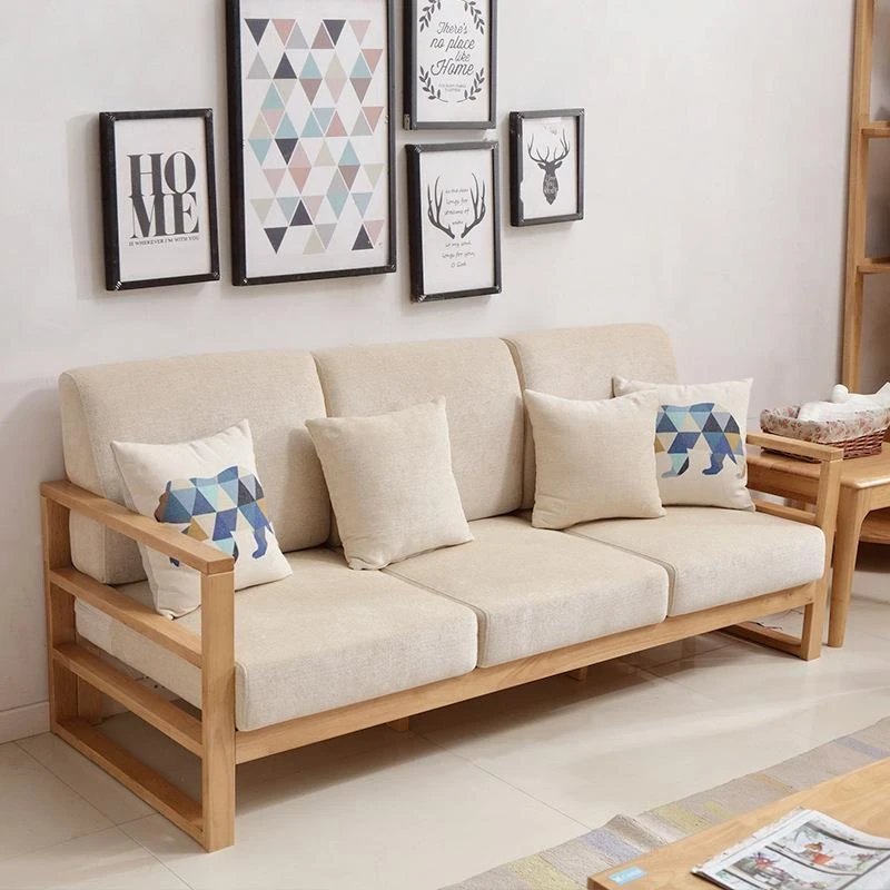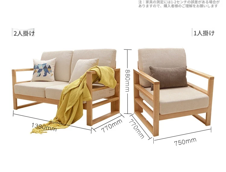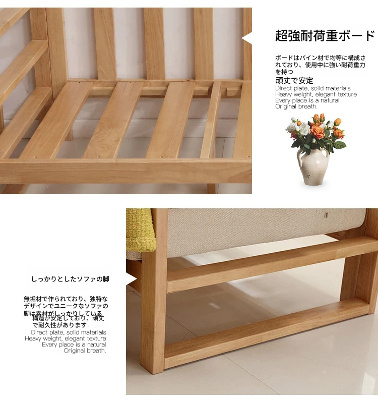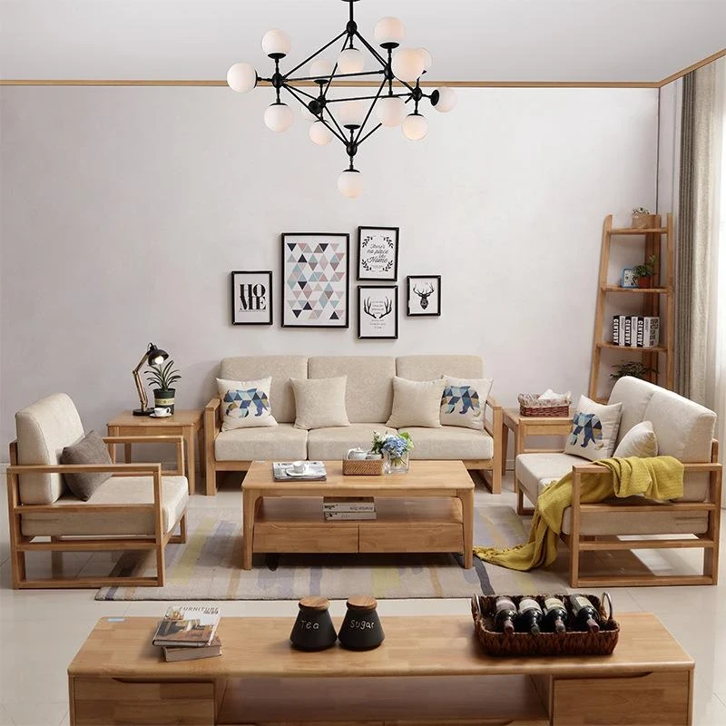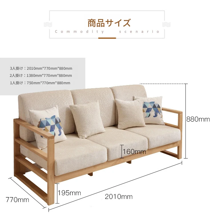 北欧風シンプルデザインの全木製ソファセット - 小型住宅に最適!高品質ファブリック使用のリビングルーム用ソファとコーヒーテーブルの組み合わせで、快適な空間を演出します。