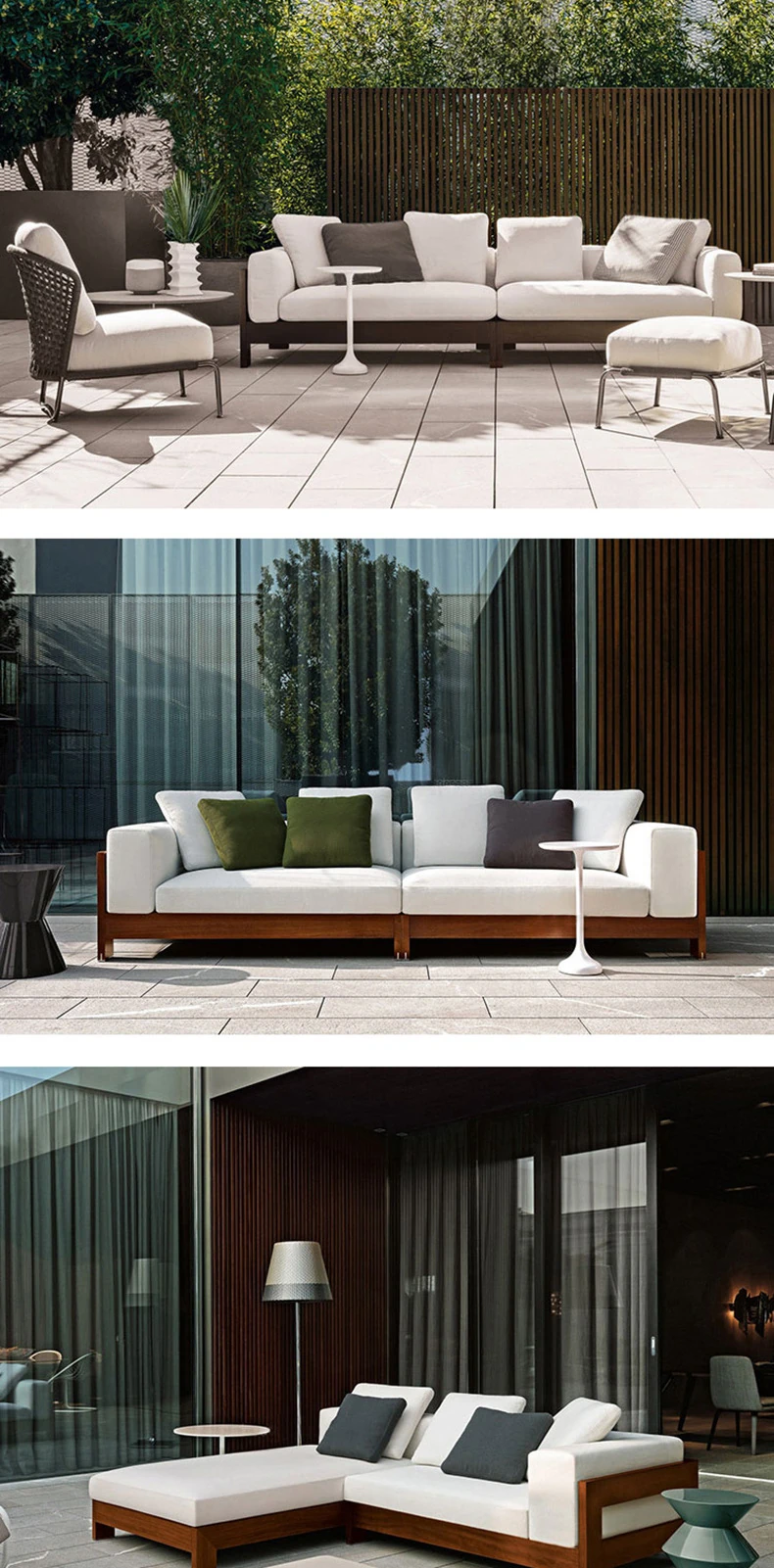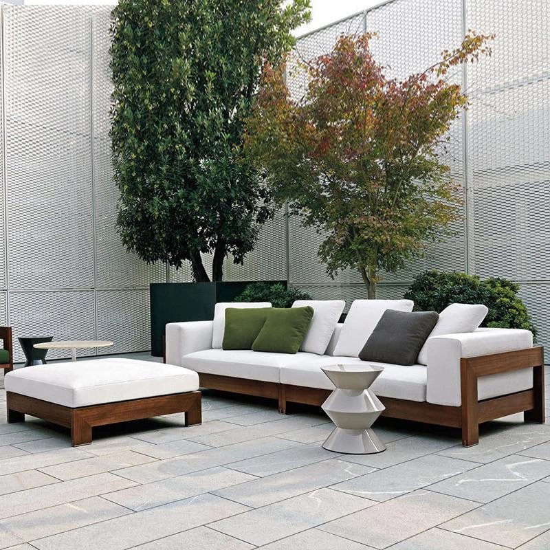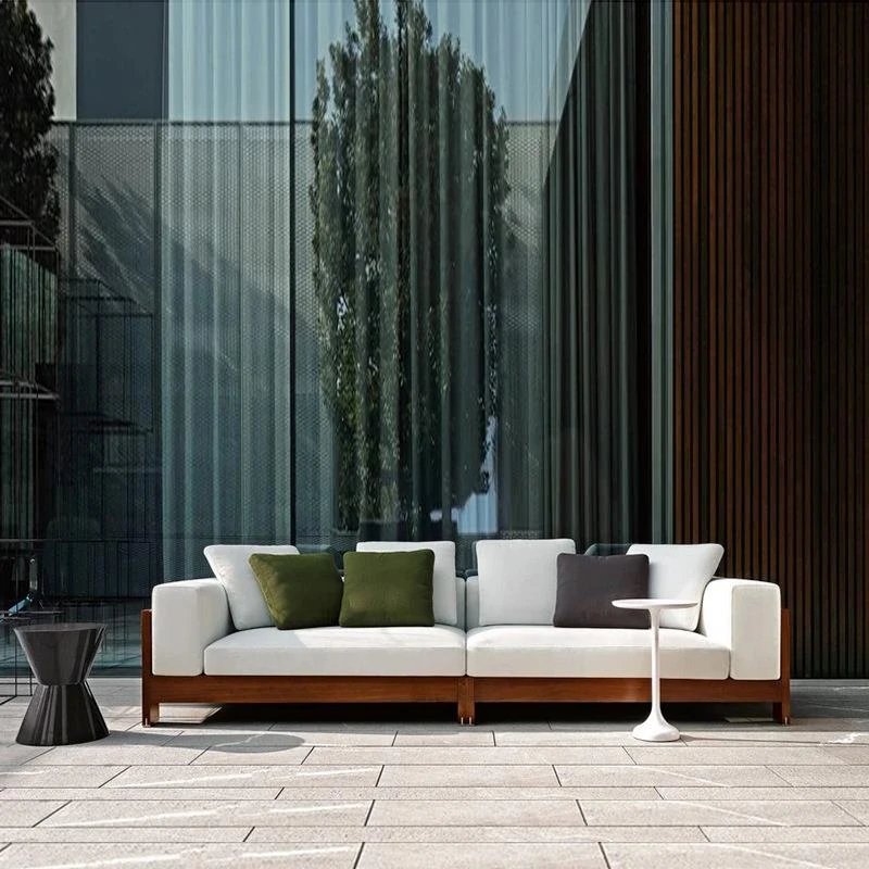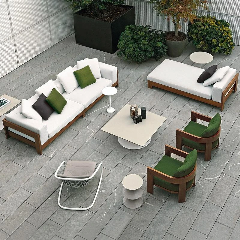 北欧スタイルのアウトドアソファ - ヴィラや庭にぴったりなリラックス空間を演出する高品質チークウッド製!ホテルやガーデンに最適な藤製チェアも完備。おしゃれで快適なひとときをお楽しみください。