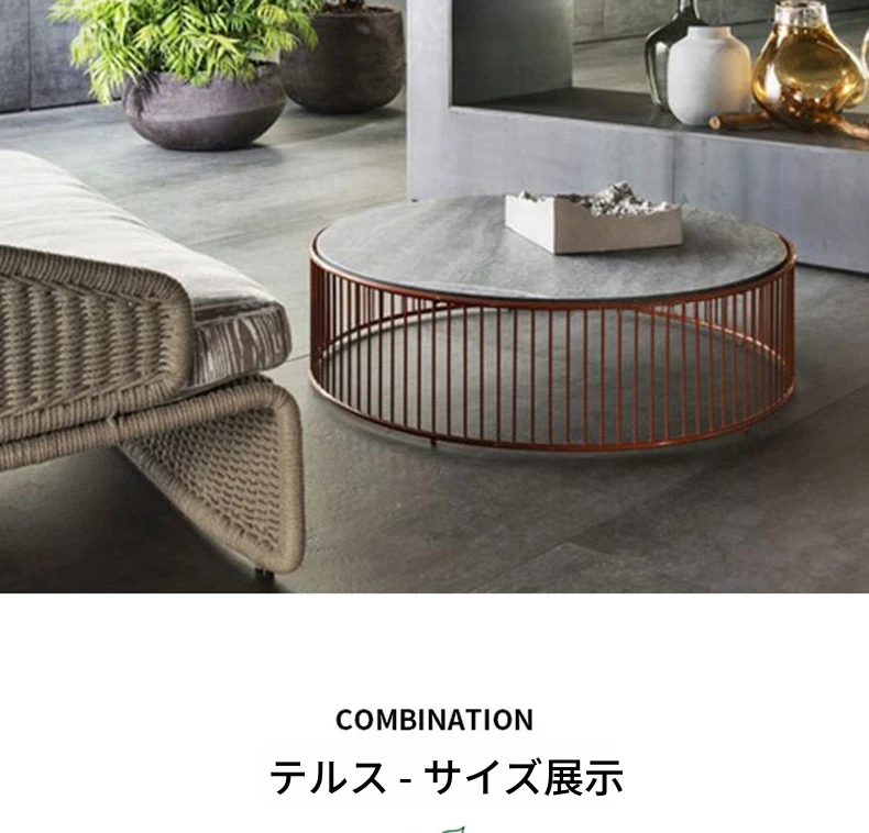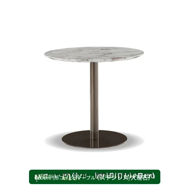 φ80cmラウンドコーヒーテーブル(ステンレス-大理石)