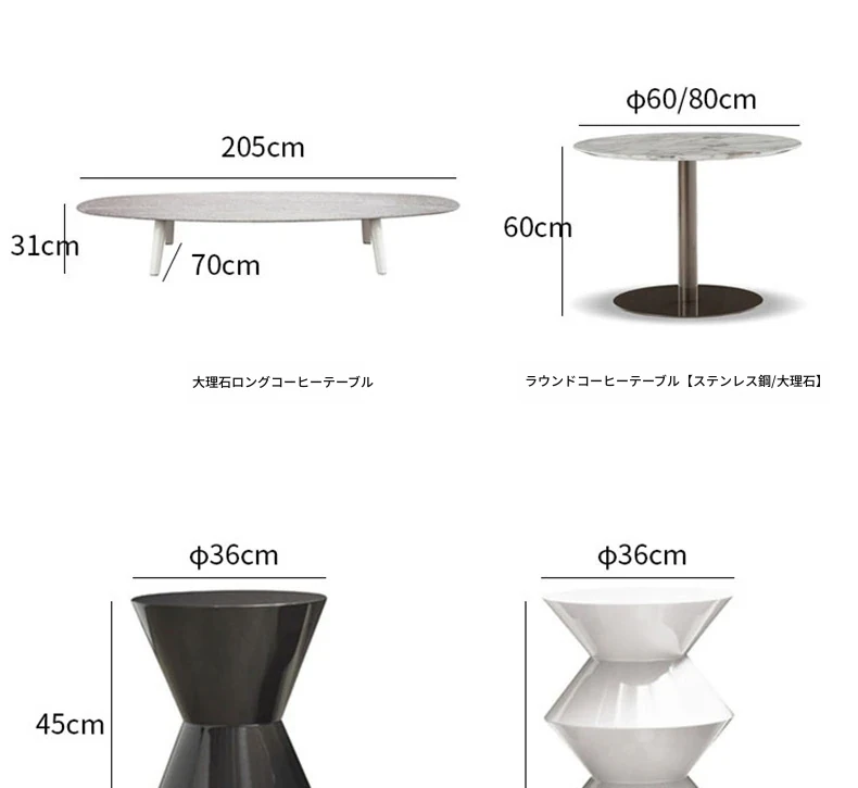 205X70cmロングコーヒーテーブル(大理石天板)