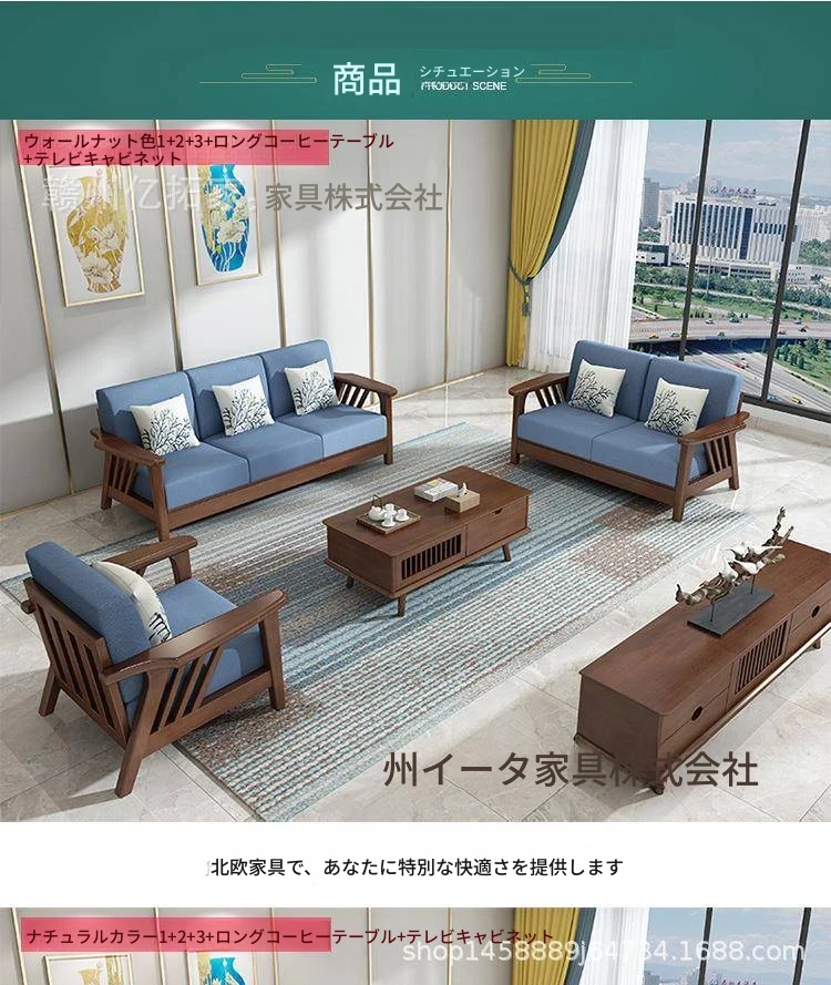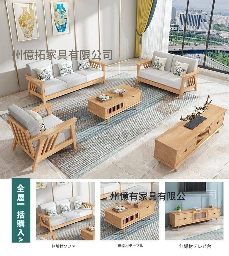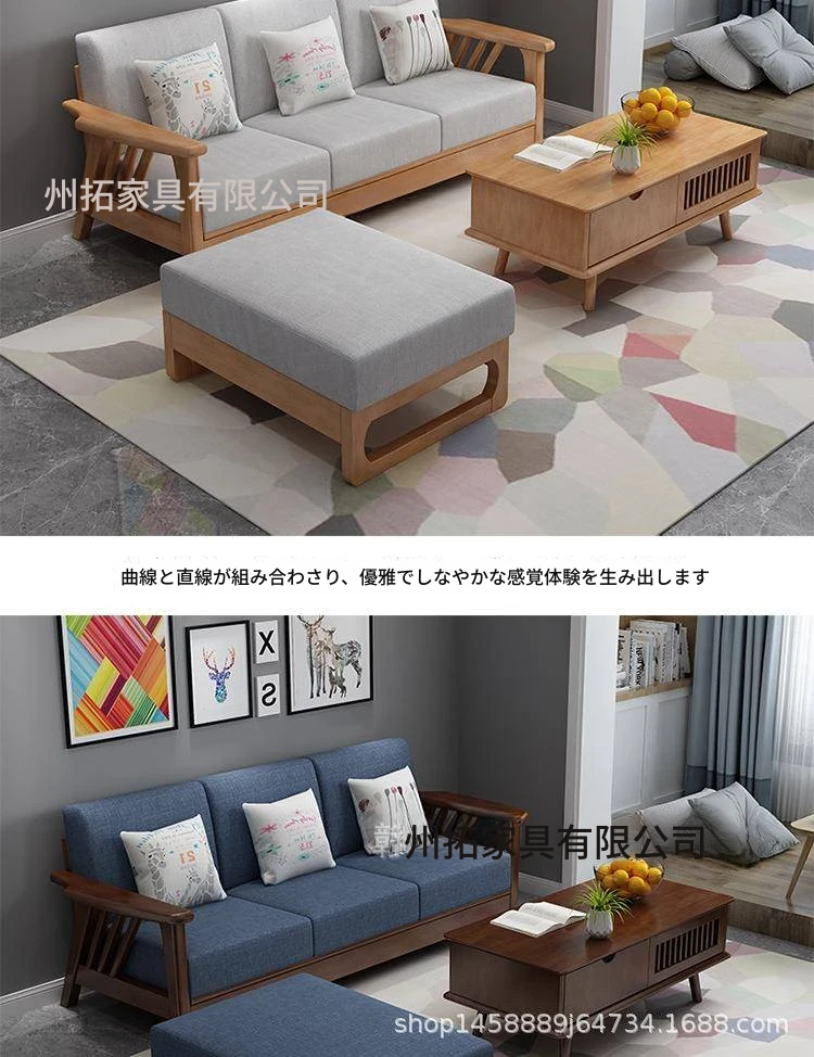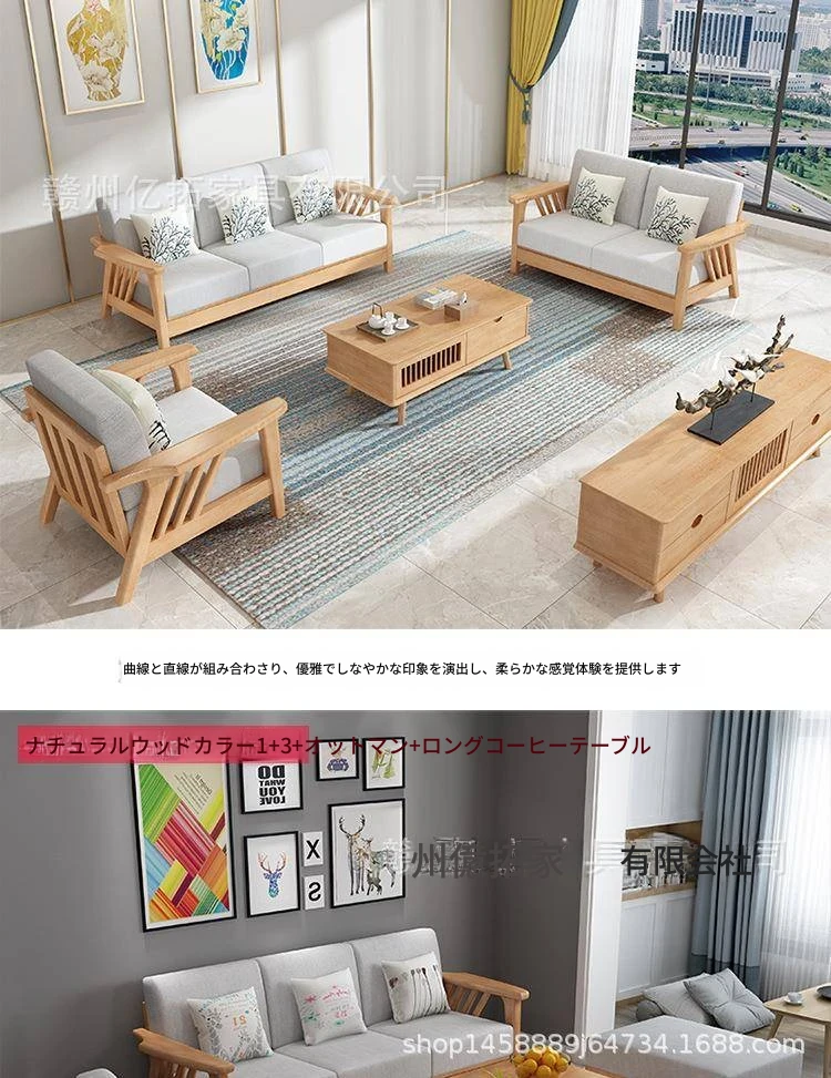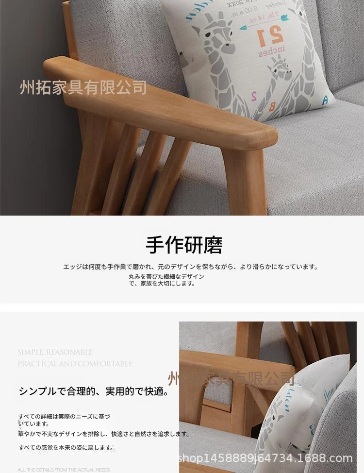 北欧スタイルの全木製ソファセット - シンプルでモダンなデザイン、コンパクトなリビングに最適な木とファブリックの融合!和風のデイベッドソファで、心地よい空間を実現します。