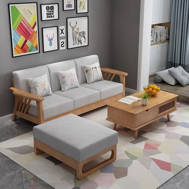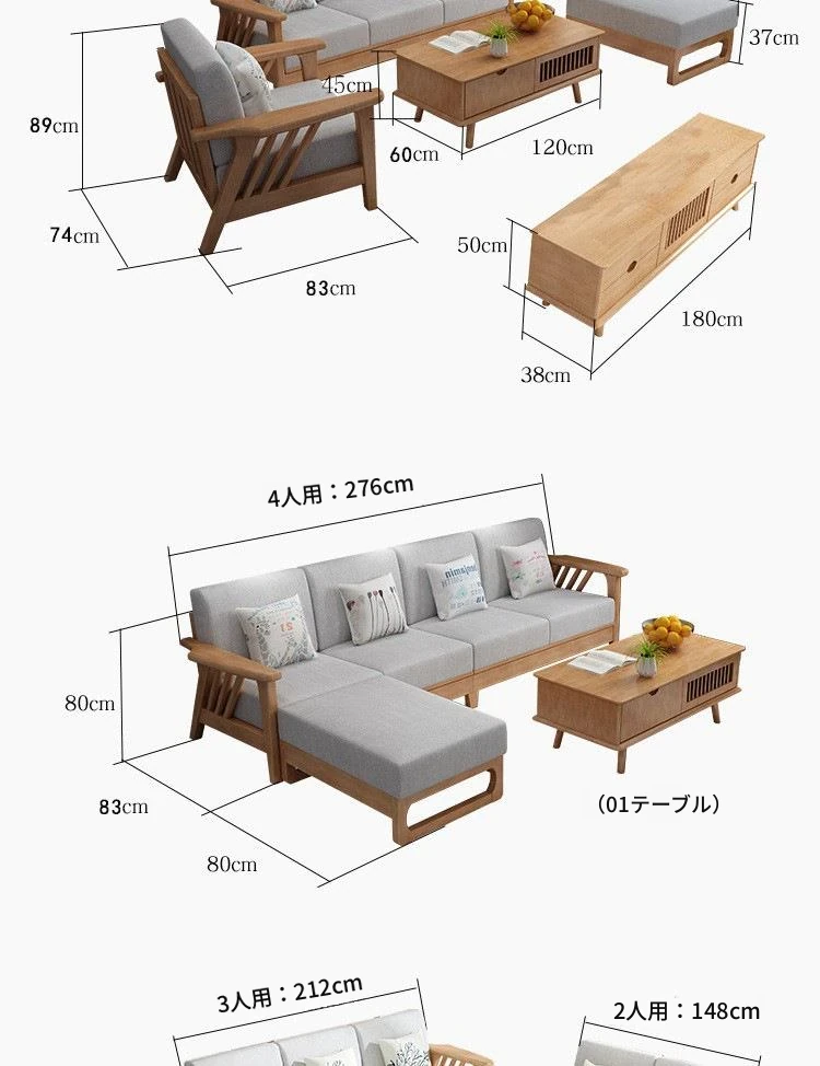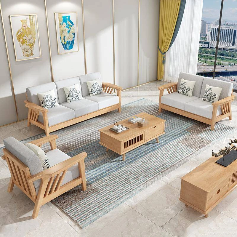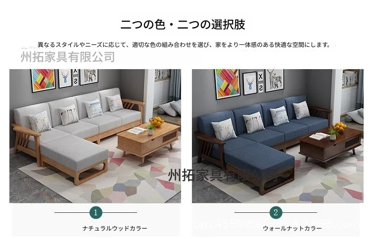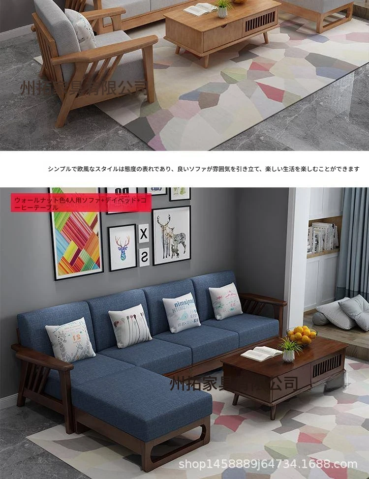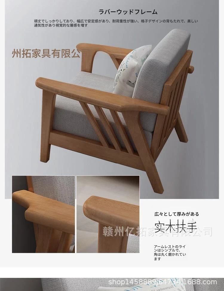 北欧スタイルの全木製ソファセット - シンプルでモダンなデザイン、コンパクトなリビングに最適な木とファブリックの融合!和風のデイベッドソファで、心地よい空間を実現します。