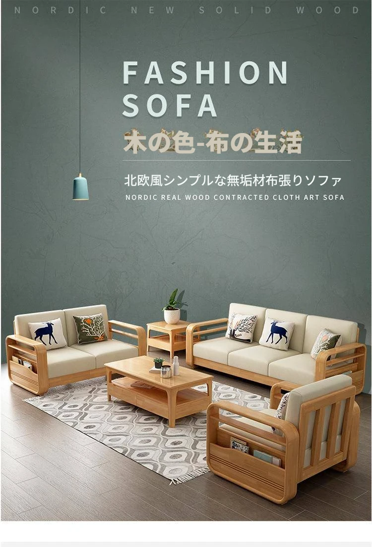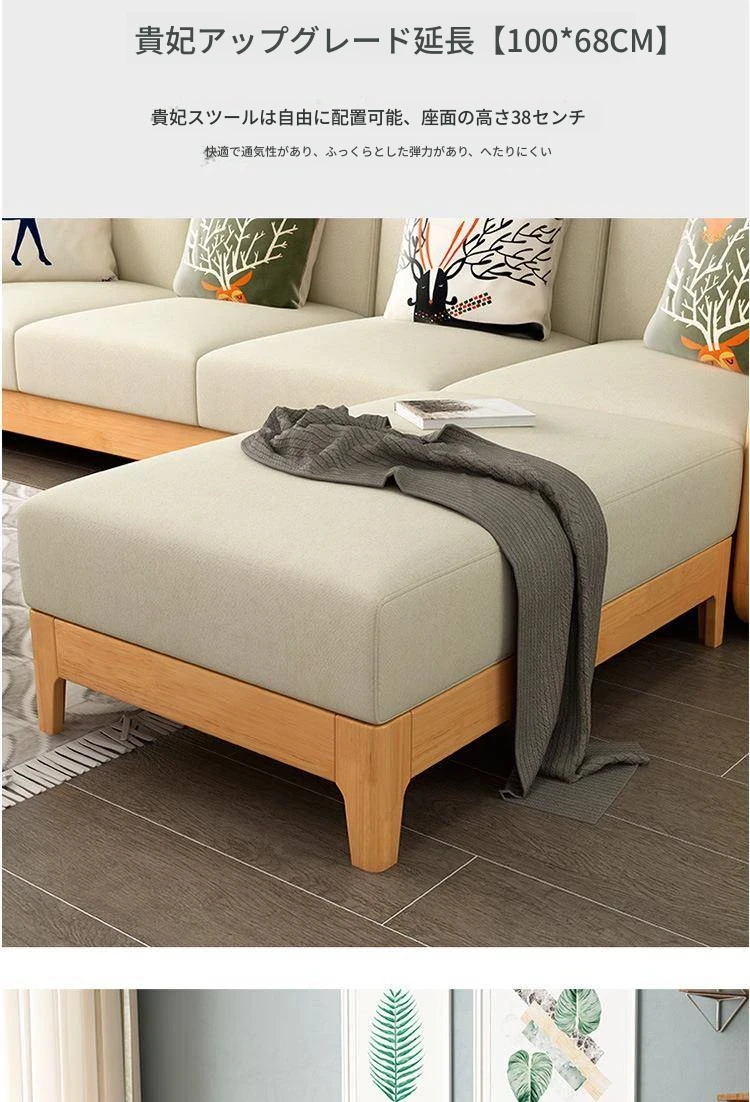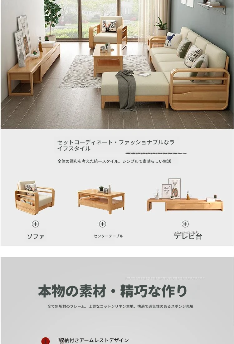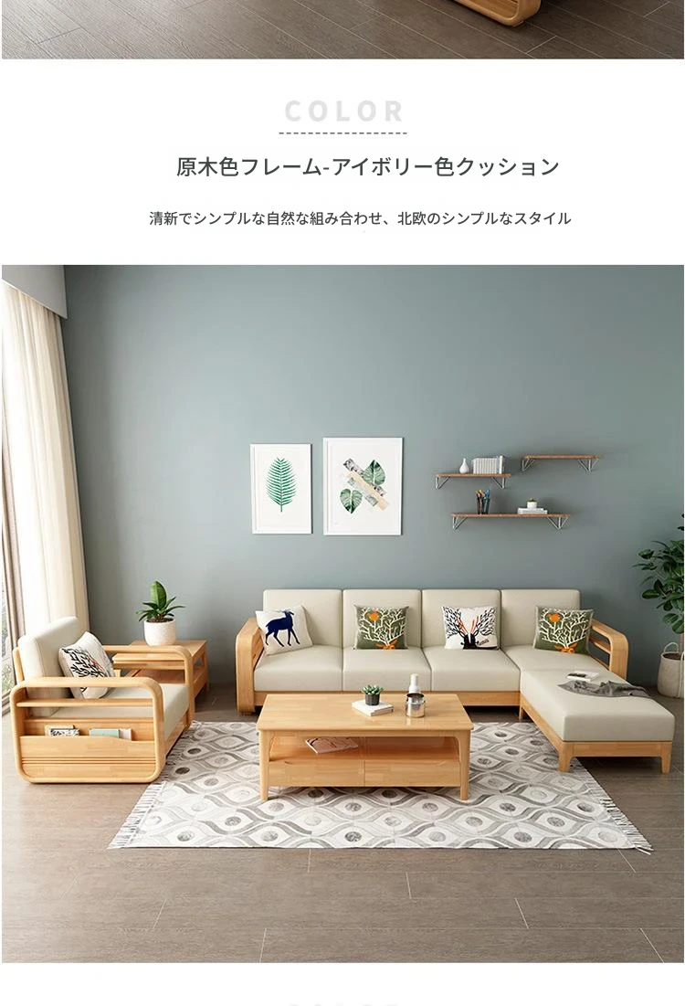 北欧スタイルの無垢材ソファセット!コンパクトなコーナー型デザインで、小さなお部屋にもぴったり。現代的なシンプルさと温かみのあるゴムの木材を使用した高品質なリビングソファです。快適なひとときをお過ごしください!