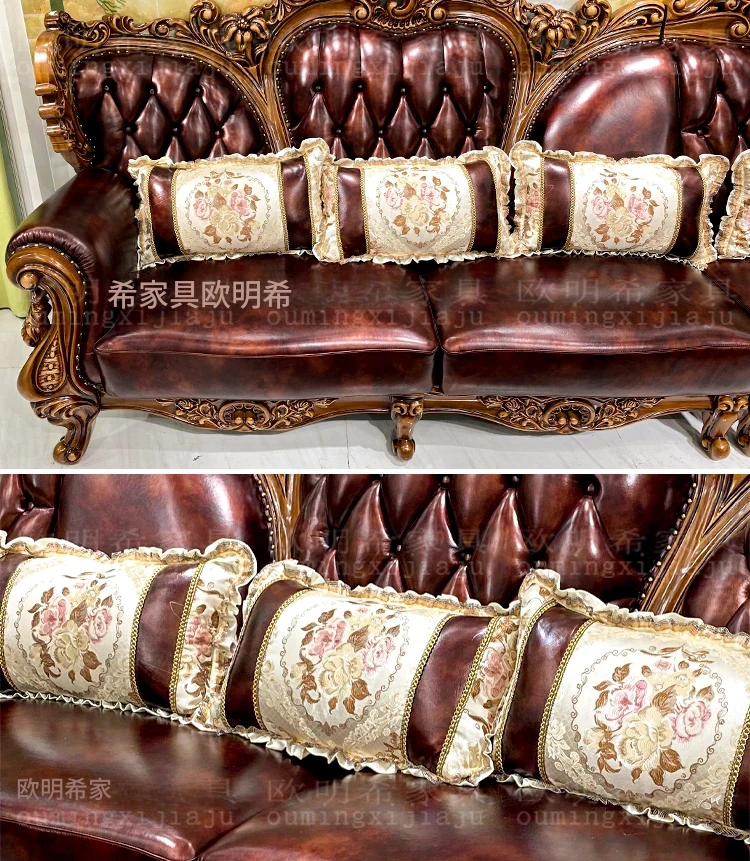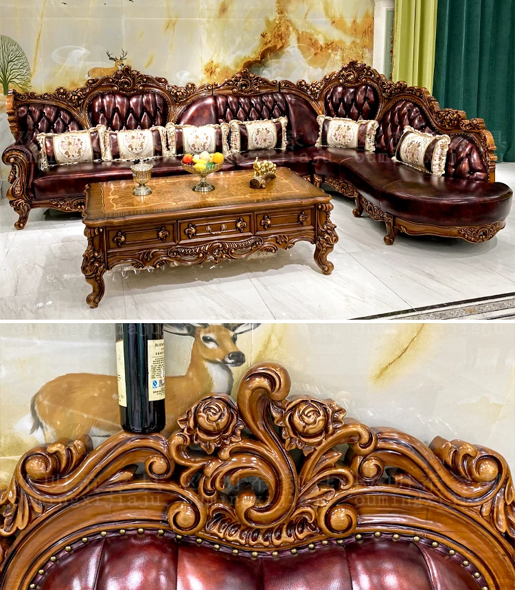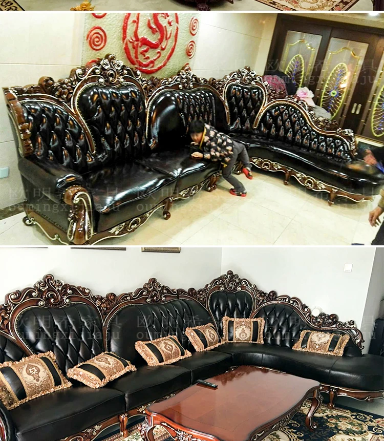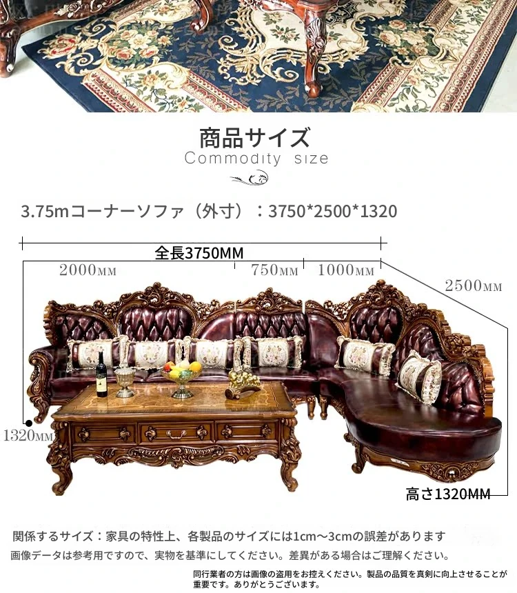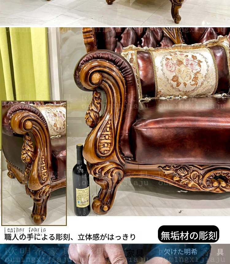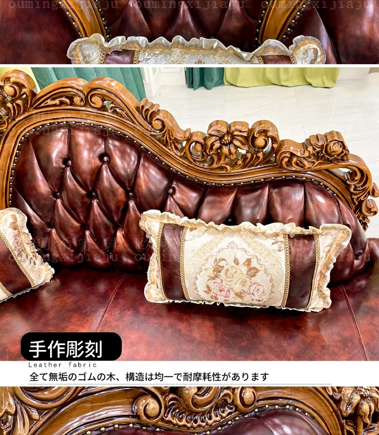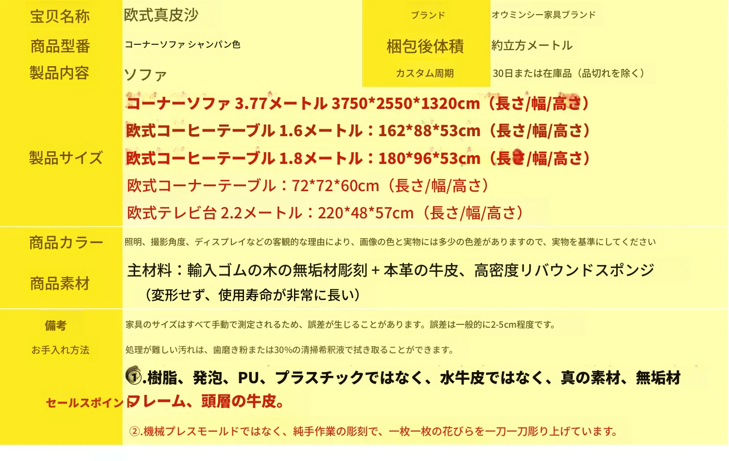 オーミンシー欧式コーナーソファ 本革 リビングルーム用コンビネーション フェイスタイプ 小型住宅に最適!全て天然木製 ヴィラ向け高級家具で、洗練された空間を演出します。
