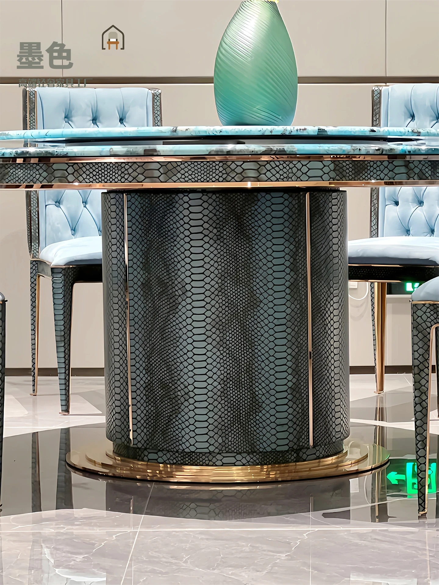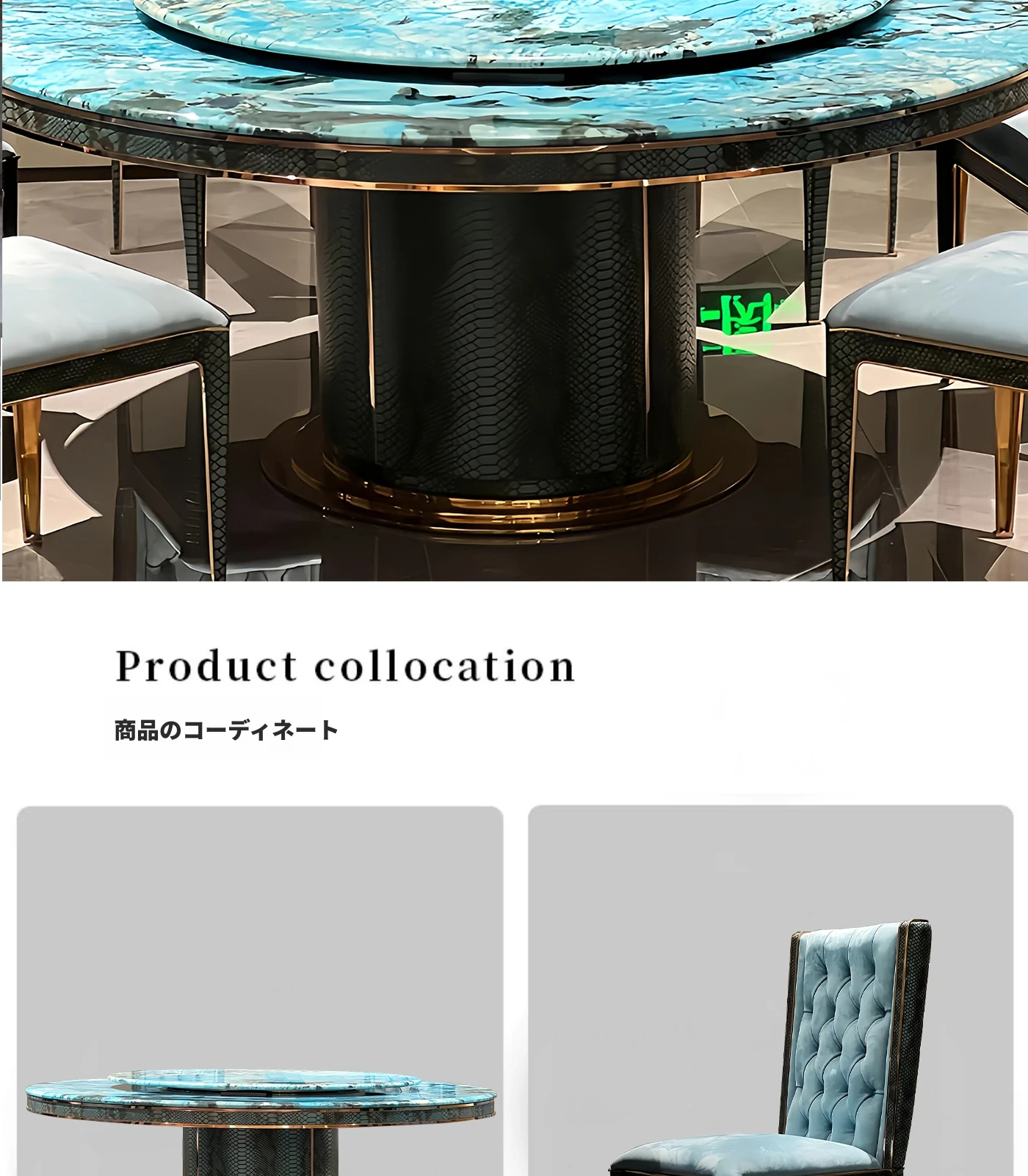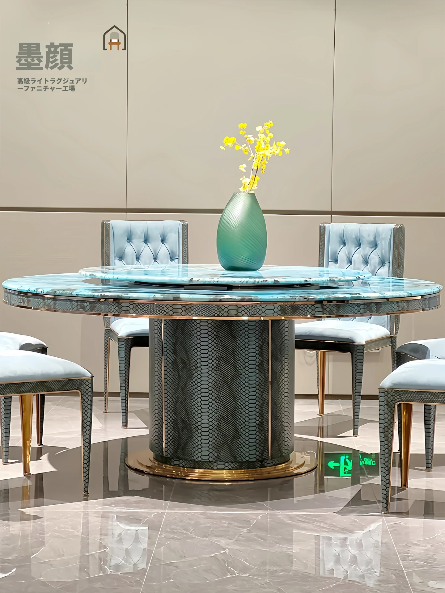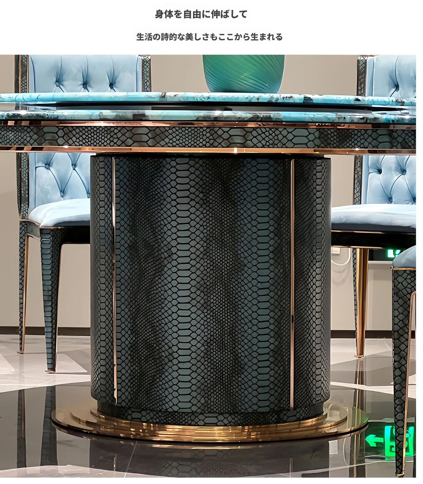 ポストモダン・ベントレー風 イタリアンラグジュアリー 大理石ダイニングテーブルセット 高級感あふれる別荘リビング用 丸型ステンレス製テーブルで特別な食事体験を楽しもう!