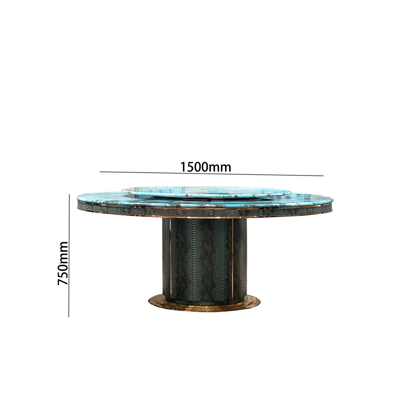 エレガントなヨーロピアンスタイルの大理石丸テーブル - 回転式、彫刻入りの高級ダイニングセット、ゴールド仕上げ、1.6メートル、家庭用に最適!あなたの食卓を華やかに彩ります。