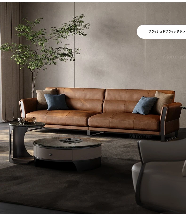 ポストモダン・ラグジュアリーソファ|デザイナーによるミニマリストデザイン|ヴィラや大平面に最適|イタリアンスタイルの直線的な本革ソファで、洗練された空間を演出!