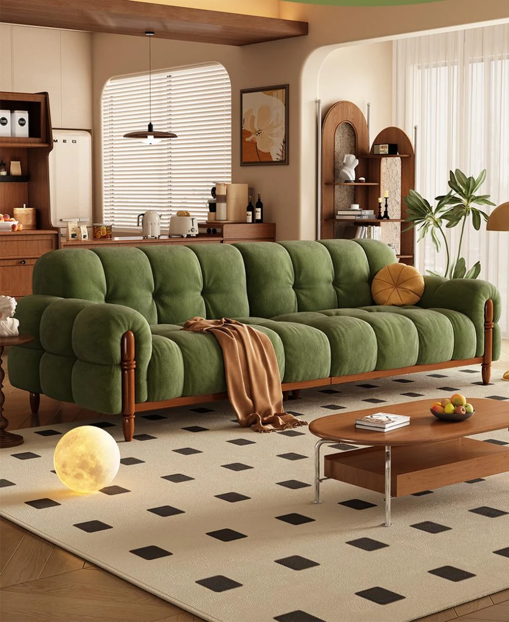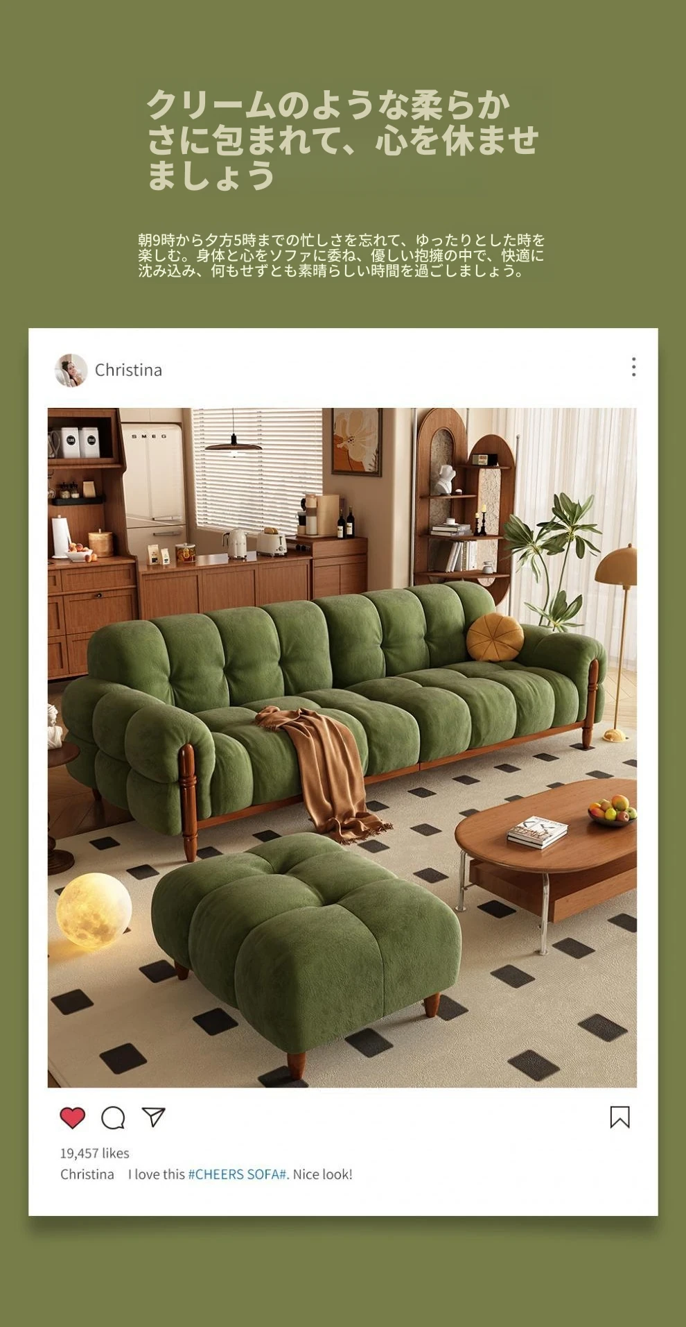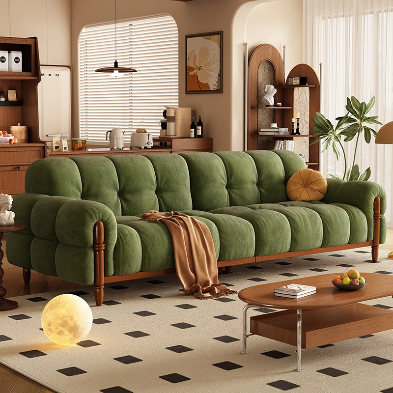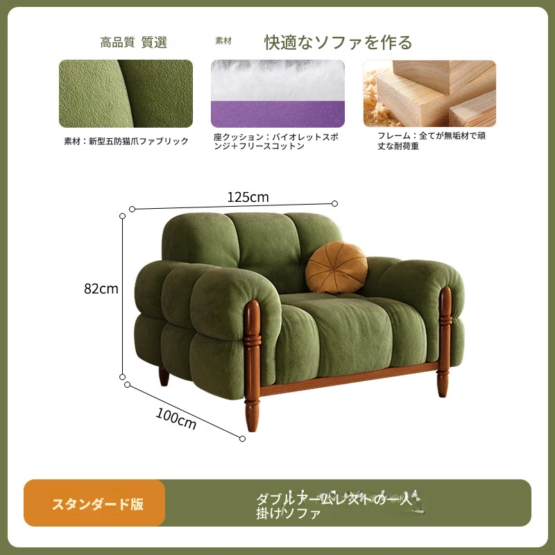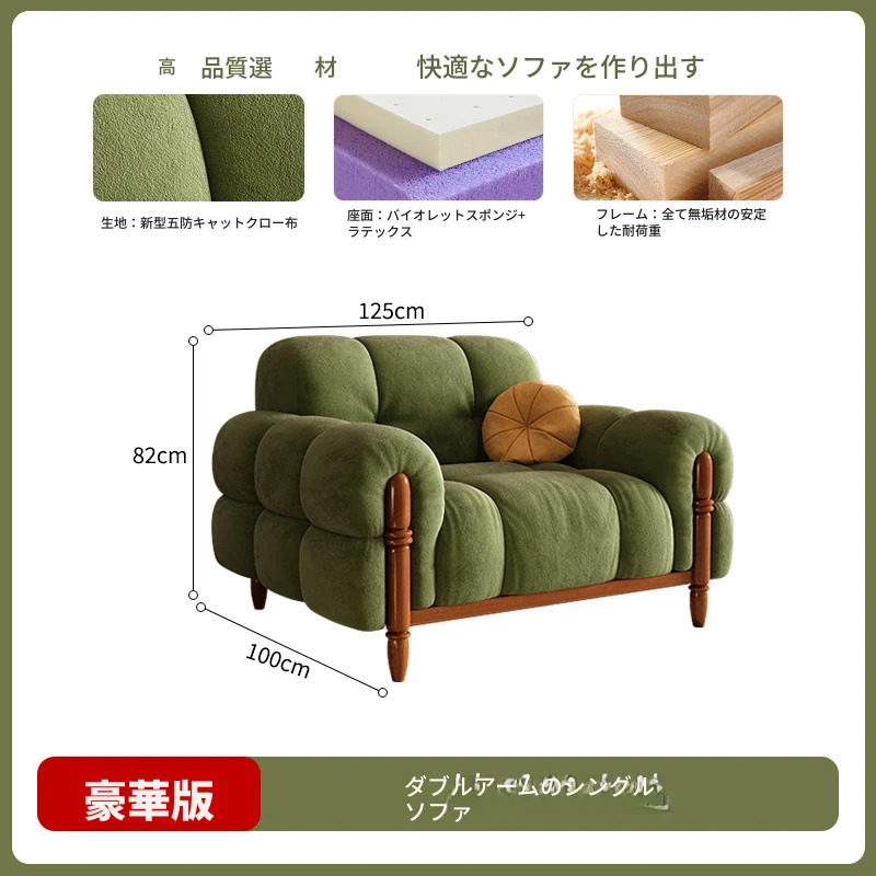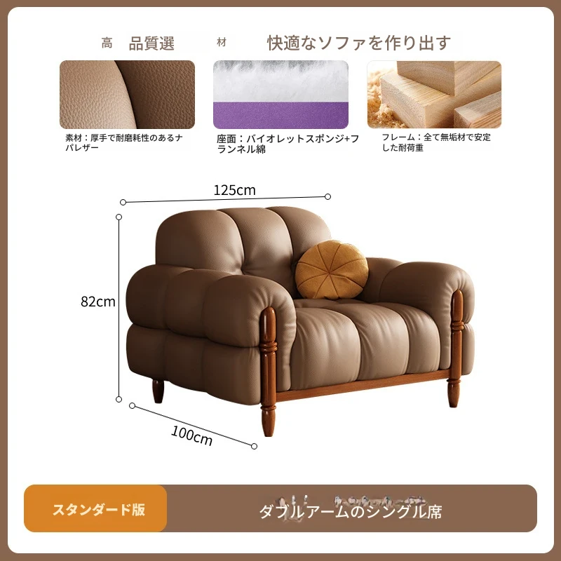 レトロピアノキー布製ソファ新作!クリーム風デザインの小型リビングに最適な本革コンビネーション原木北欧ソファ。おしゃれで快適な空間を演出します!