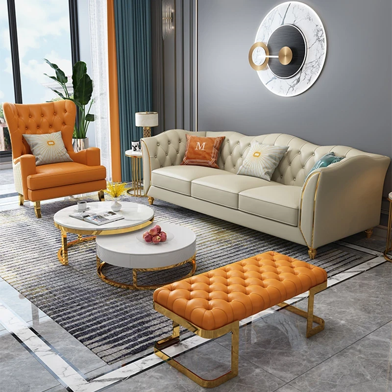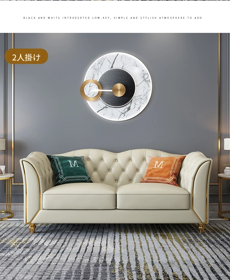 ルソンアメリカンスタイルの軽奢華リビング用レザーソファ、3人掛けイタリアンスタイルのコンパクトデザイン、後現代的なシンプルさを追求した123組み合わせ。快適な空間を演出します!