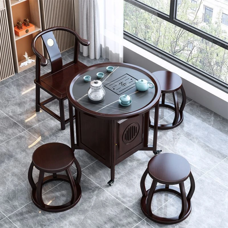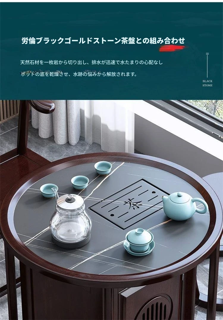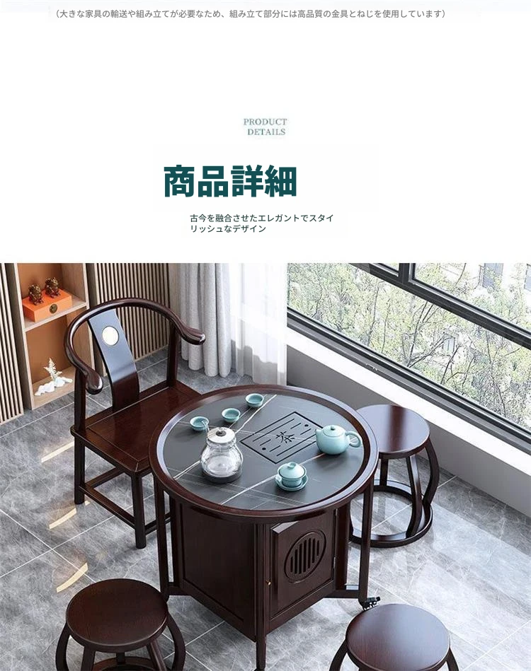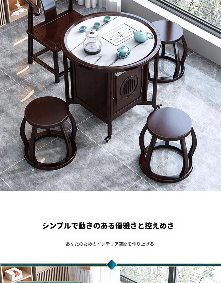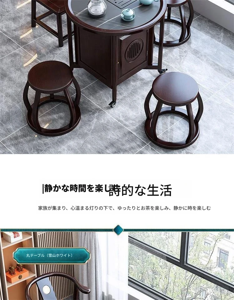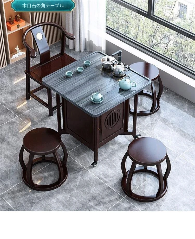バルコニー用の実木製ティーテーブルセット - 四角形と円形のティーテーブルが揃ったコンパクトな家庭用セットで、リラックスしたひとときを演出します。