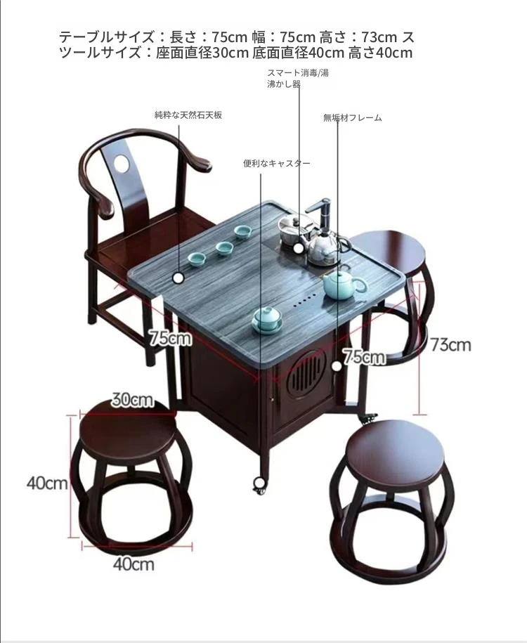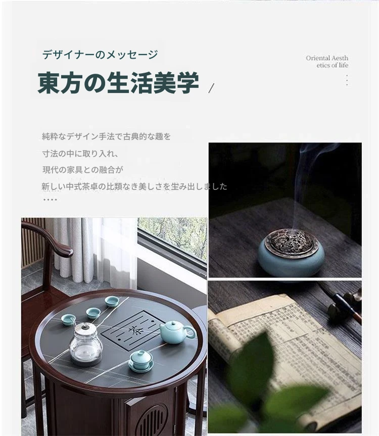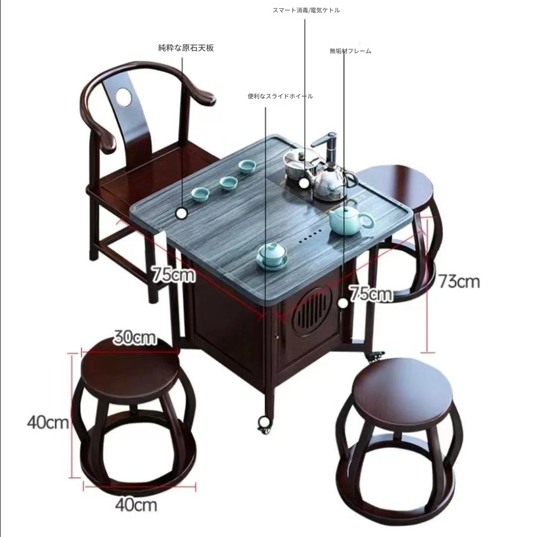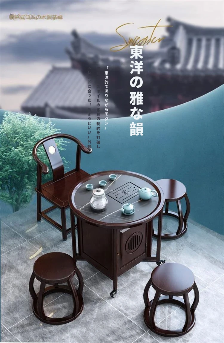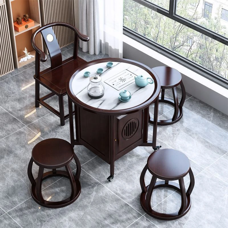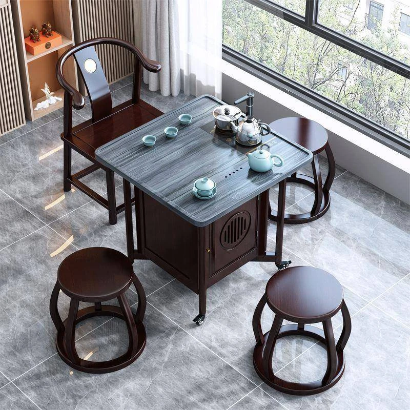 バルコニー用の実木製ティーテーブルセット - 四角形と円形のティーテーブルが揃ったコンパクトな家庭用セットで、リラックスしたひとときを演出します。