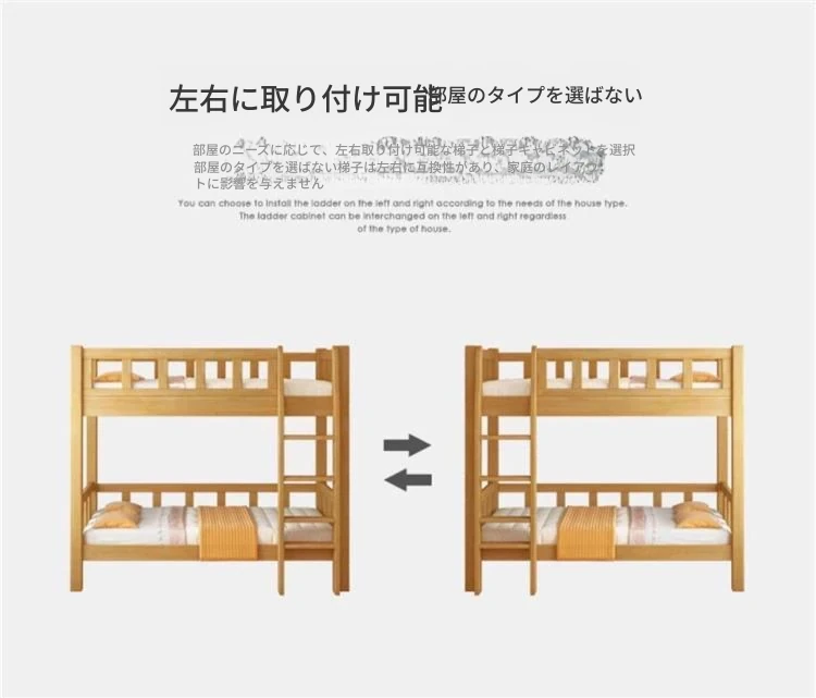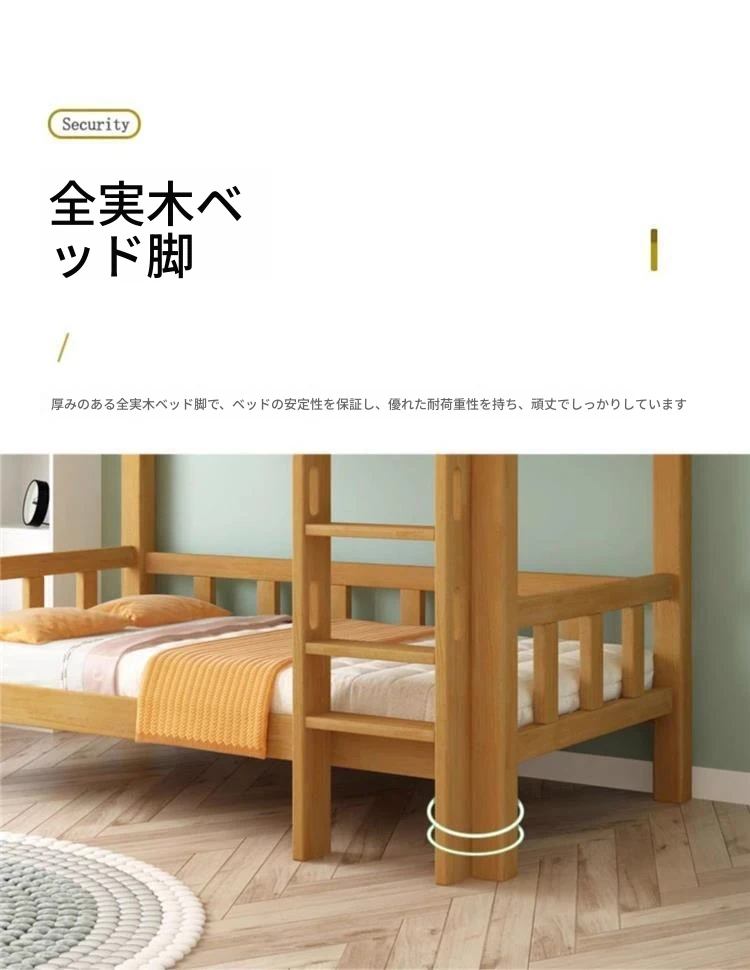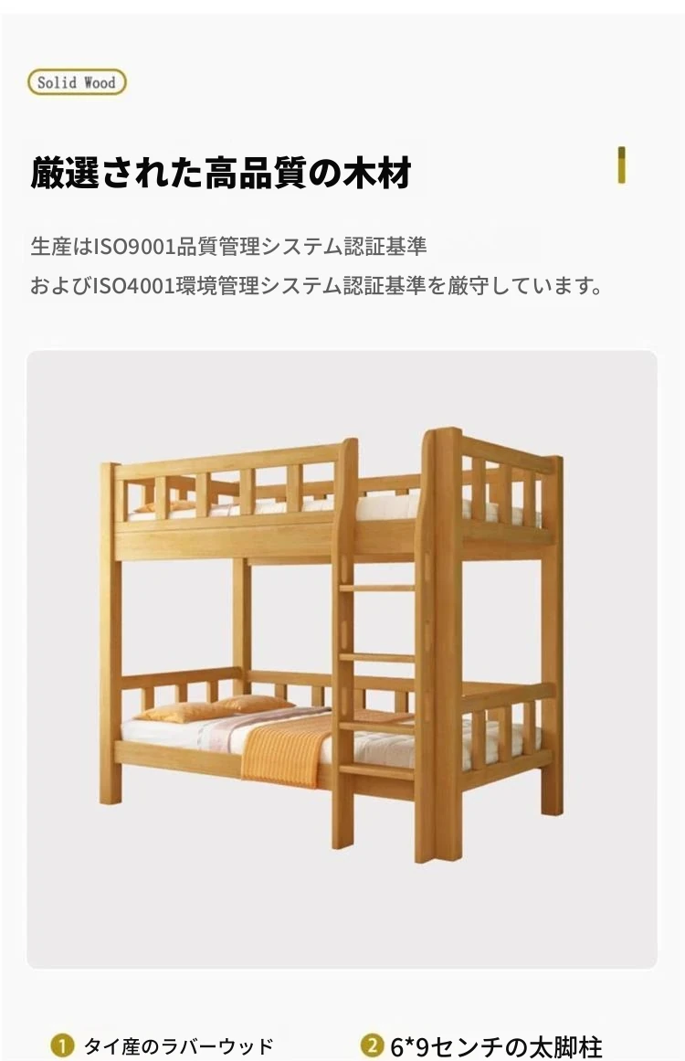 おしゃれな実木製二段ベッド!小スペースにもぴったりのダブルデッキデザイン。子供たちの夢の空間を演出する高品質な木製上下二段ベッド。家族みんなが快適に眠れる、安心の子母ベッド!