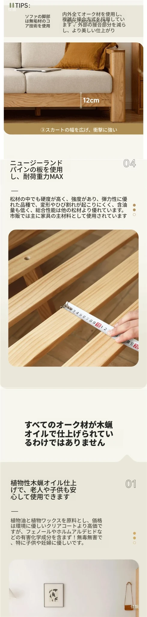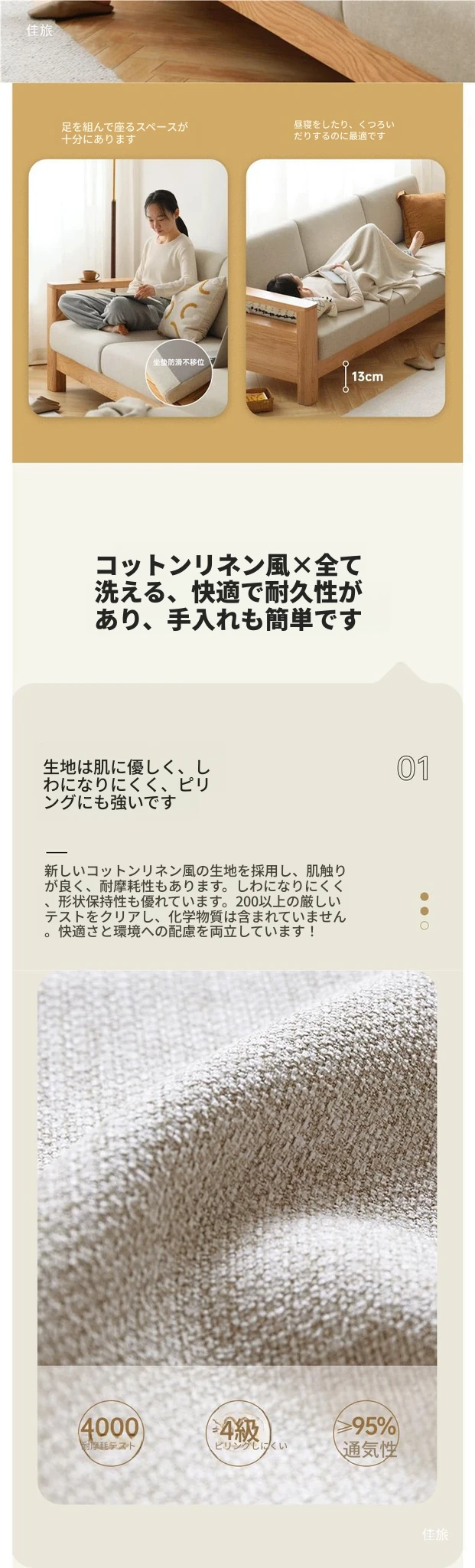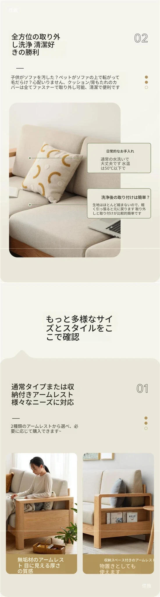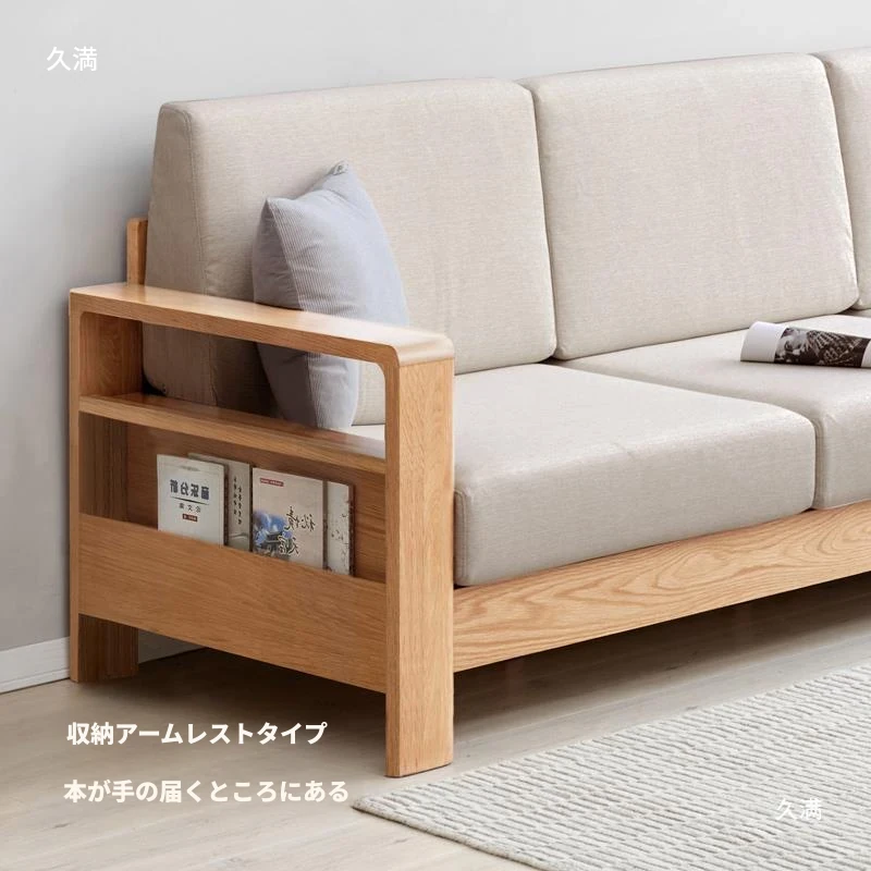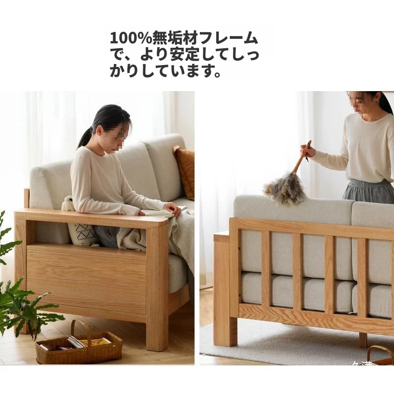 全実木製ソファ 新中式デザイン 小型オーク材ソファ リビング収納付き シンプルな無垢材風 二用途の木製ソファで、スタイリッシュな空間を演出!