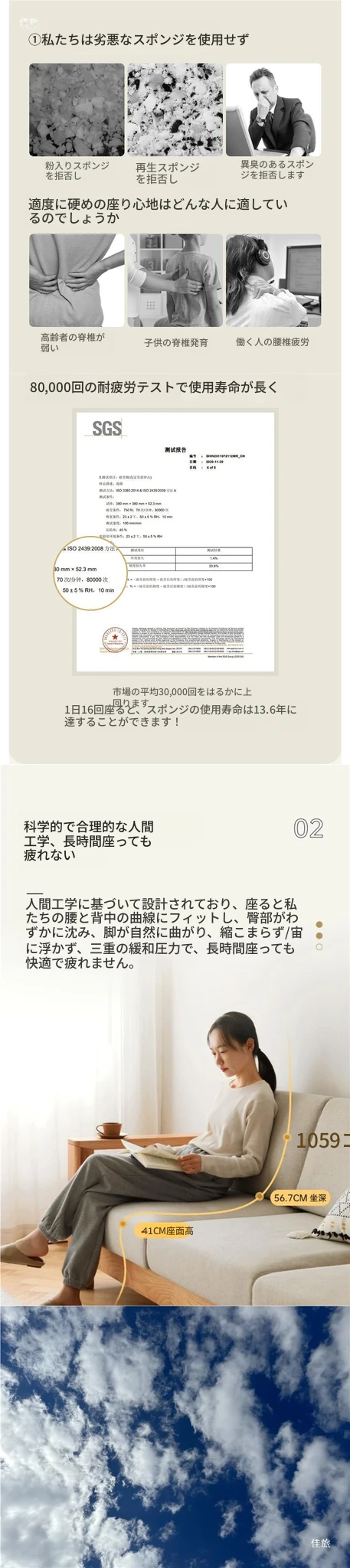 ナチュラルウッド色 ビッグダブルシート(1680*815*840mm)