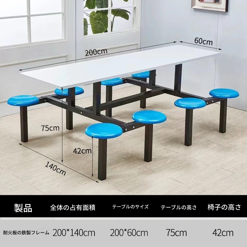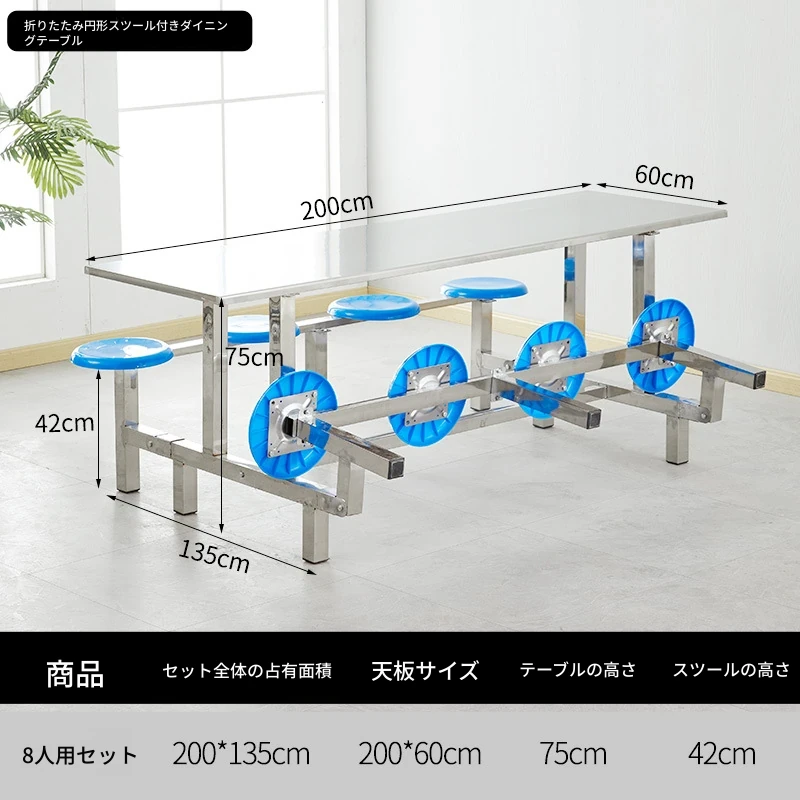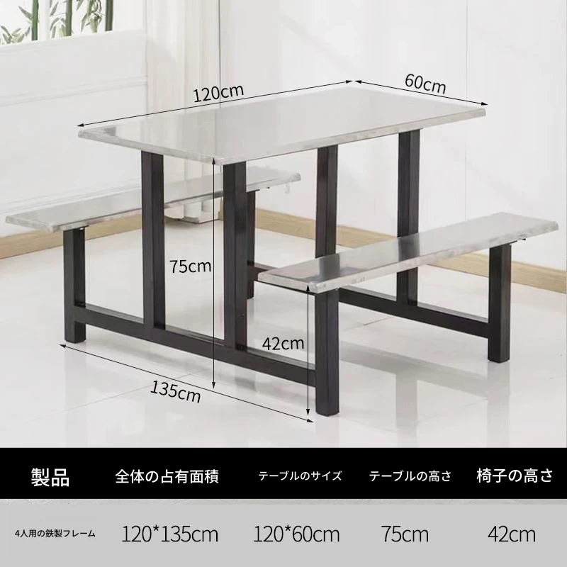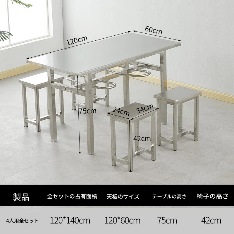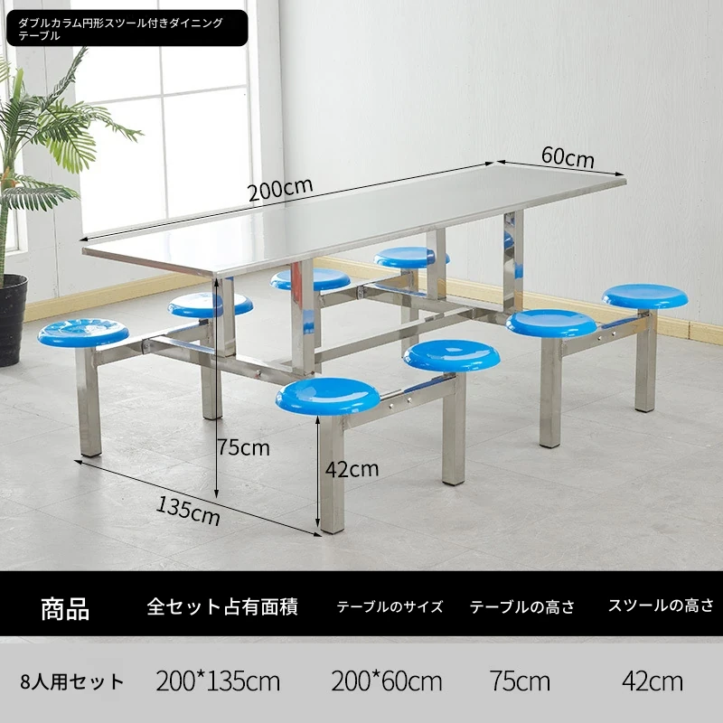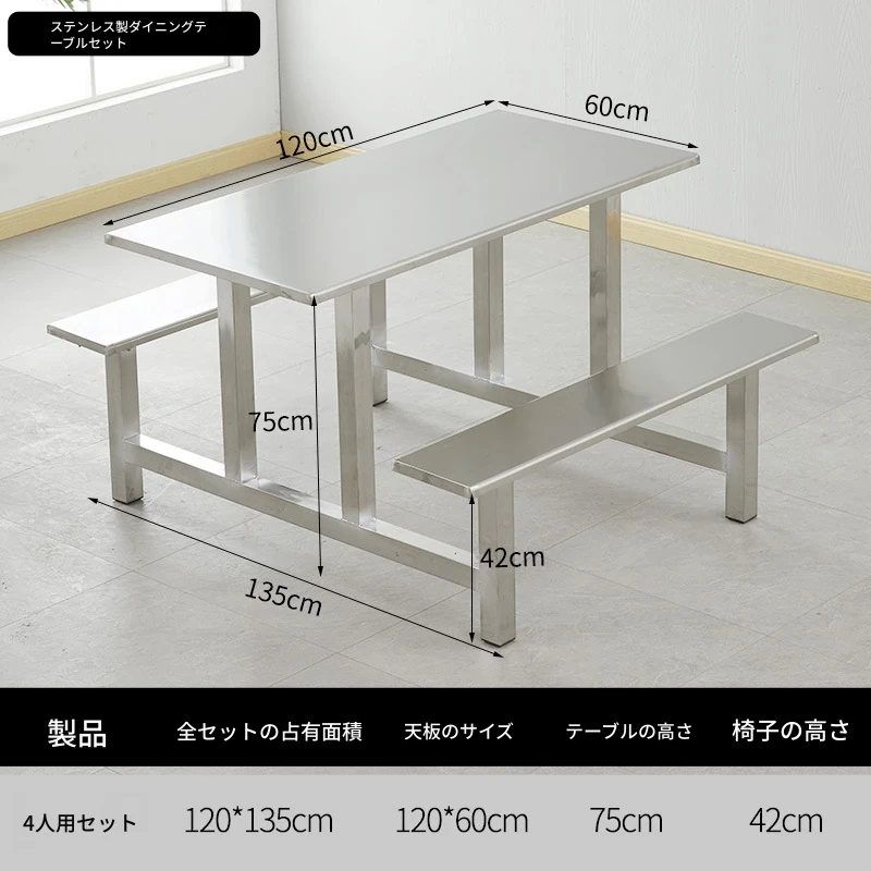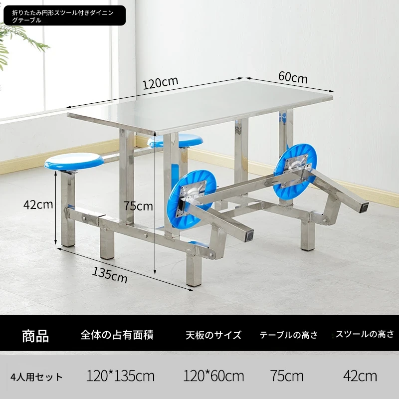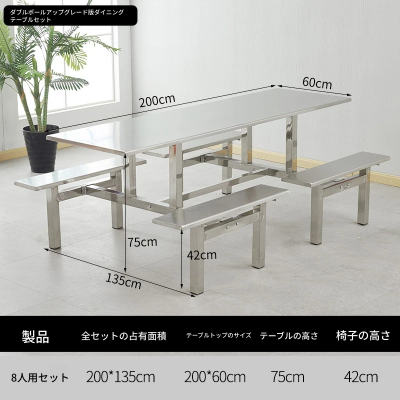 ステンレス製シンプル一体型食堂テーブル&チェアセット - 学校や工場に最適!4人用・8人用の連結デザインで、学生やスタッフの皆様に快適な食事空間を提供します。高品質で耐久性抜群!