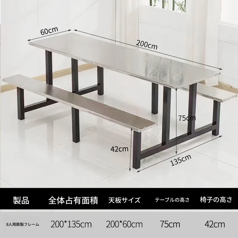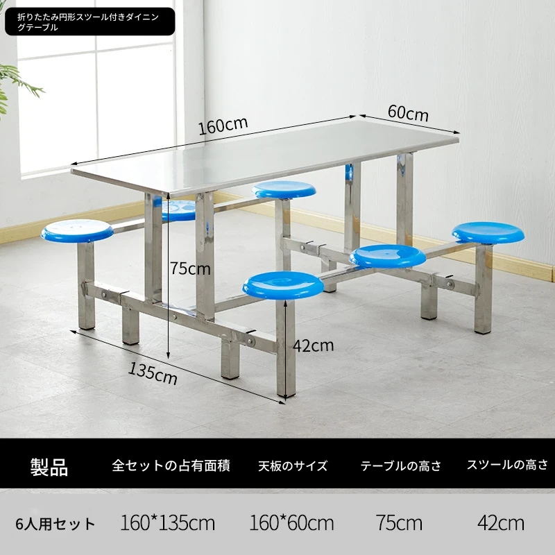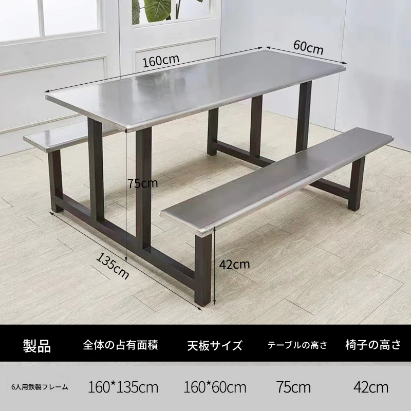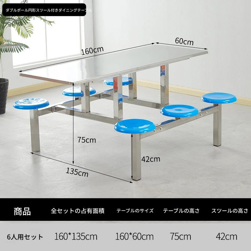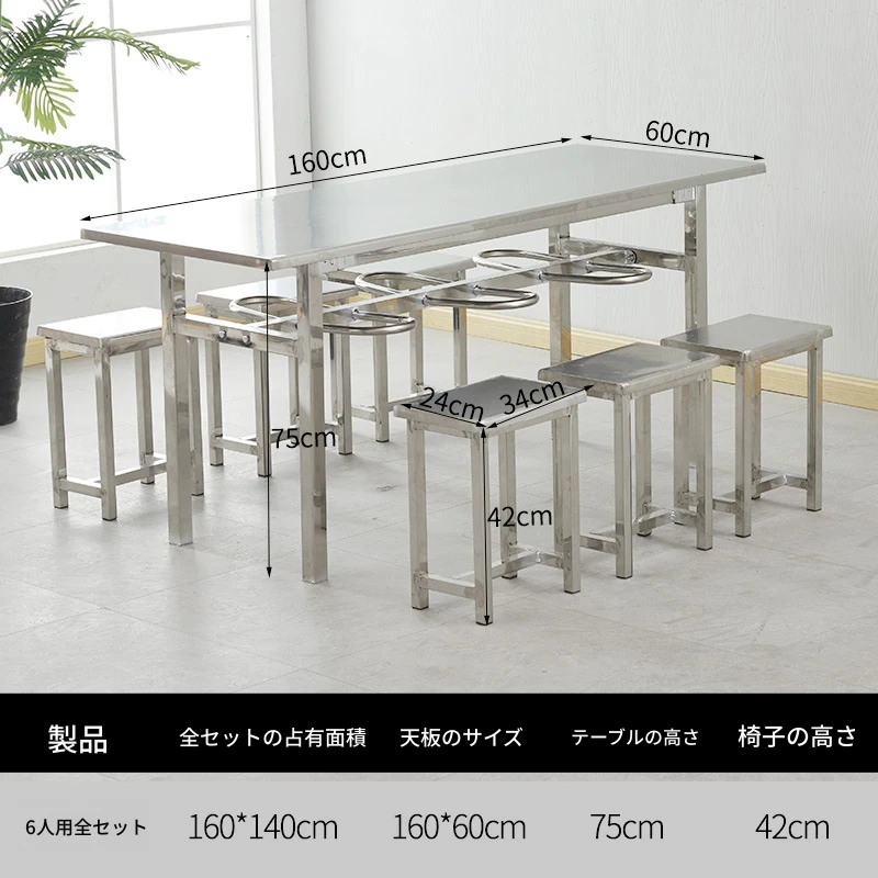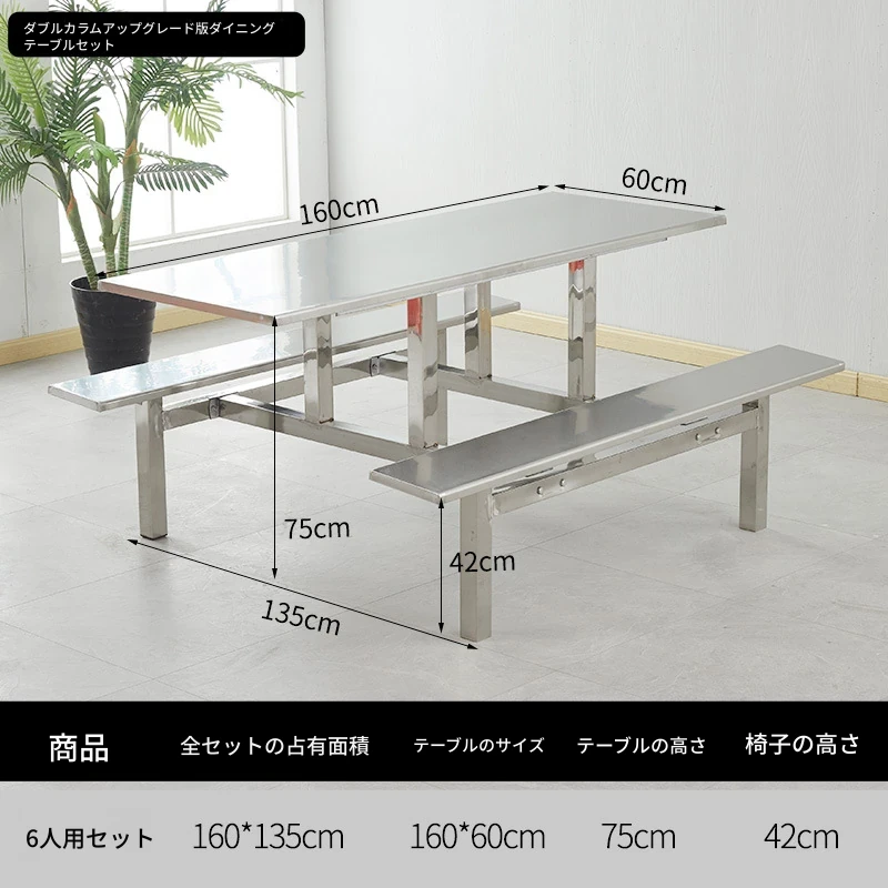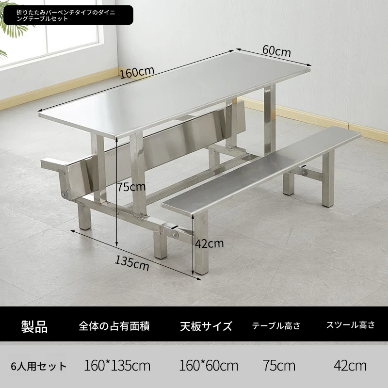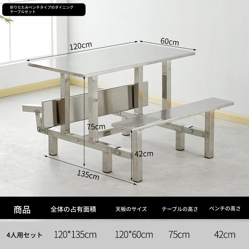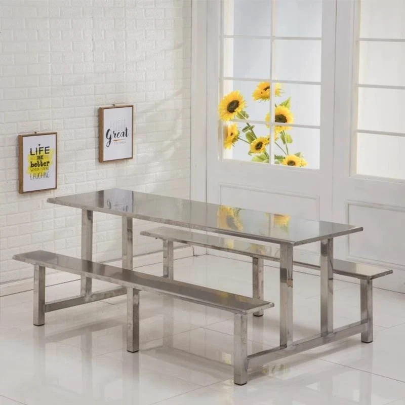 ステンレス製シンプル一体型食堂テーブル&チェアセット - 学校や工場に最適!4人用・8人用の連結デザインで、学生やスタッフの皆様に快適な食事空間を提供します。高品質で耐久性抜群!