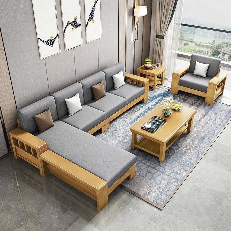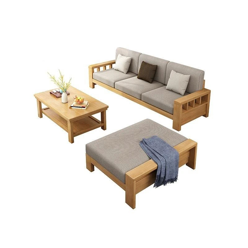 新中実木ソファー - 全てが無垢材の家具、リビングルームにぴったりのYY-05601型、コンパクトなコーナー対応、分解可能で便利。スタイリッシュで機能的なデザインで、あなたの空間をより快適に演出します!