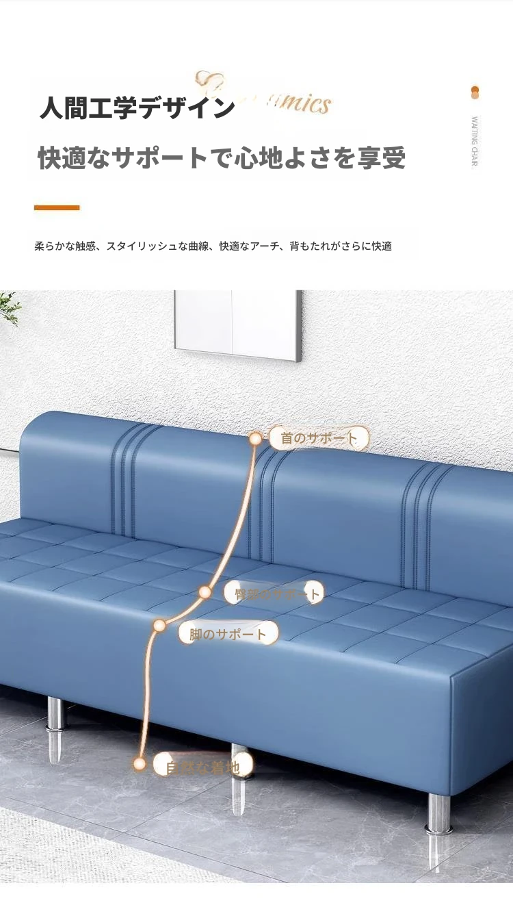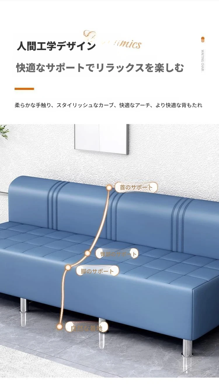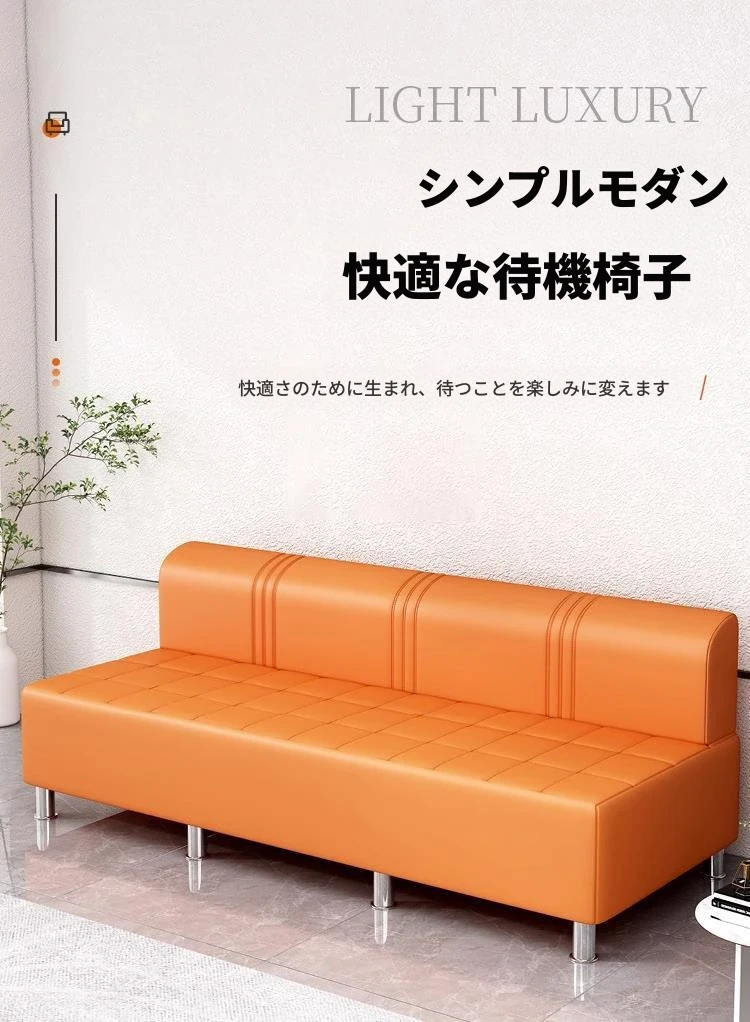 おしゃれな美容室専用!人気のヘアサロン待機椅子 - お客様がリラックスできるソファタイプの長椅子で、快適な待ち時間を提供します。美容室の雰囲気を高めるスタイリッシュなデザイン!