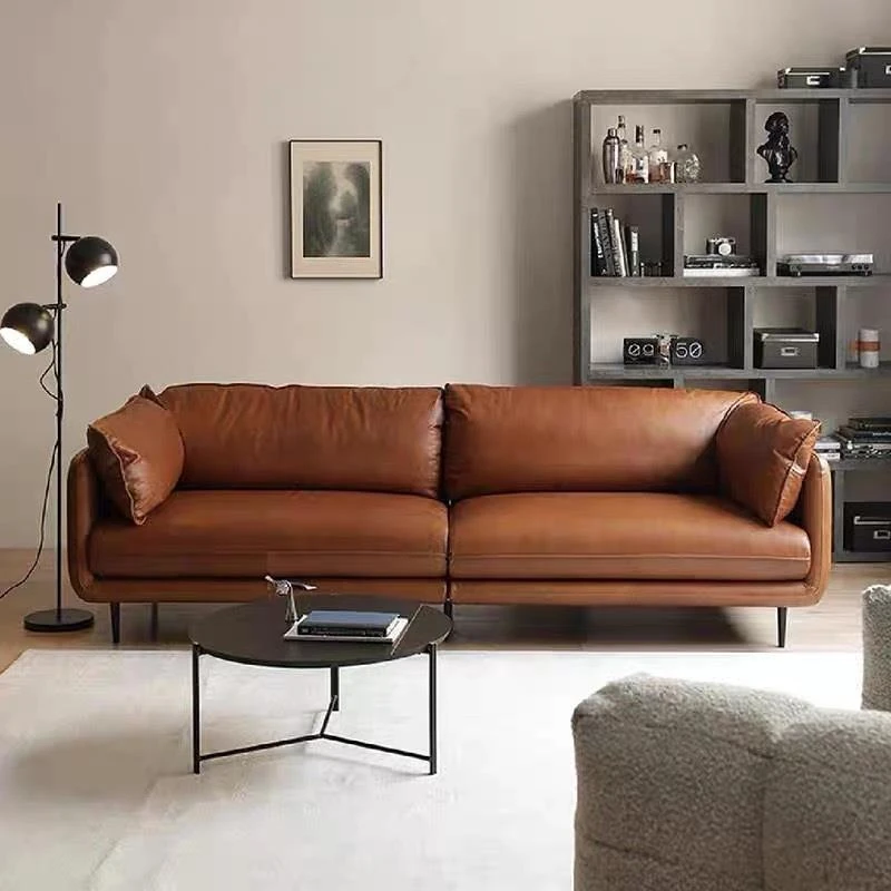 アメリカンレトロレザー製HUGソファー|オイルワックスレザー|モダン軽奢スタイル|イタリアンリビング|小型北欧シンプルデザイン|直排型で省スペースも実現!