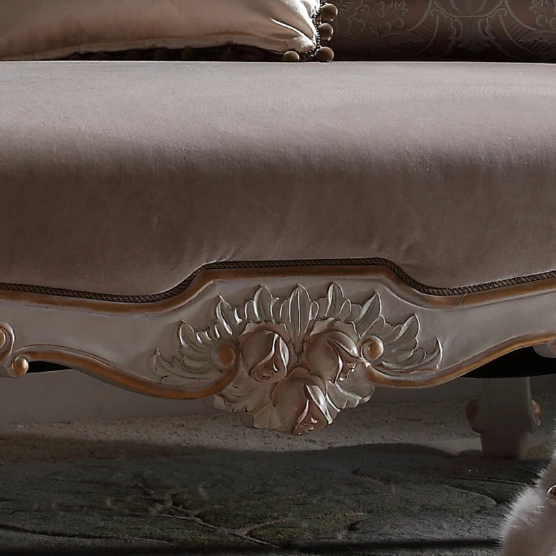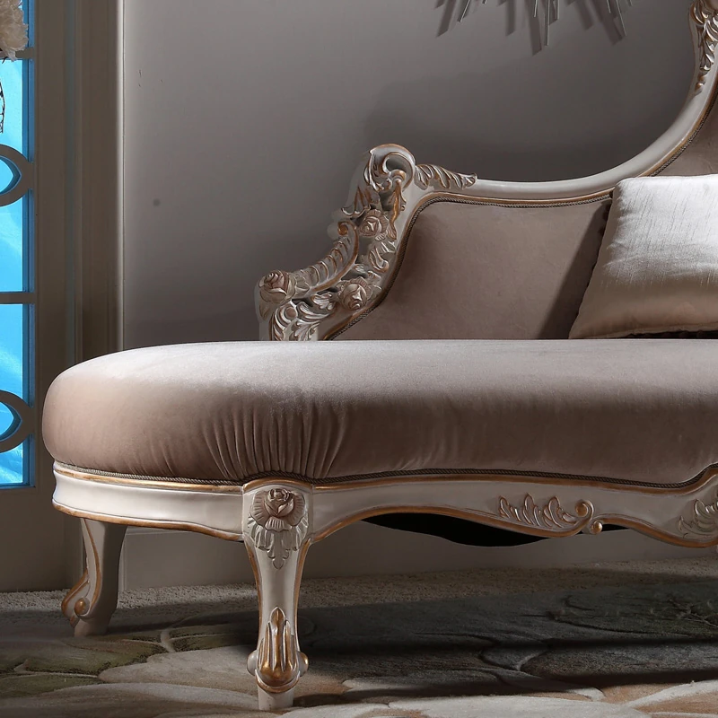 信益轩 欧式実木製貴妃椅 - 宮廷スタイルの美しい布張りリクライニングチェア、寝室やフランス風リビングに最適なソファ椅子で、優雅さと快適さを兼ね備えています。おしゃれな空間を演出しましょう!