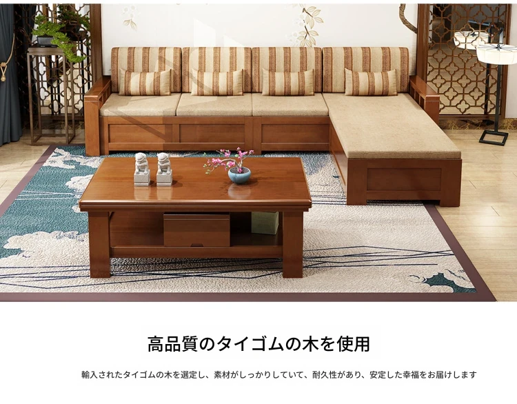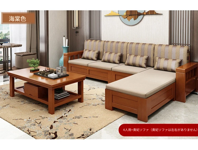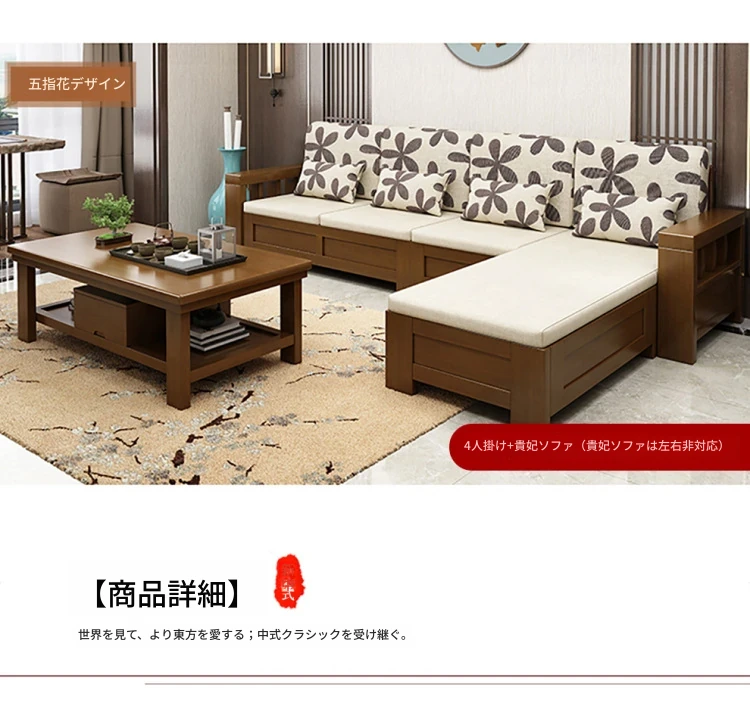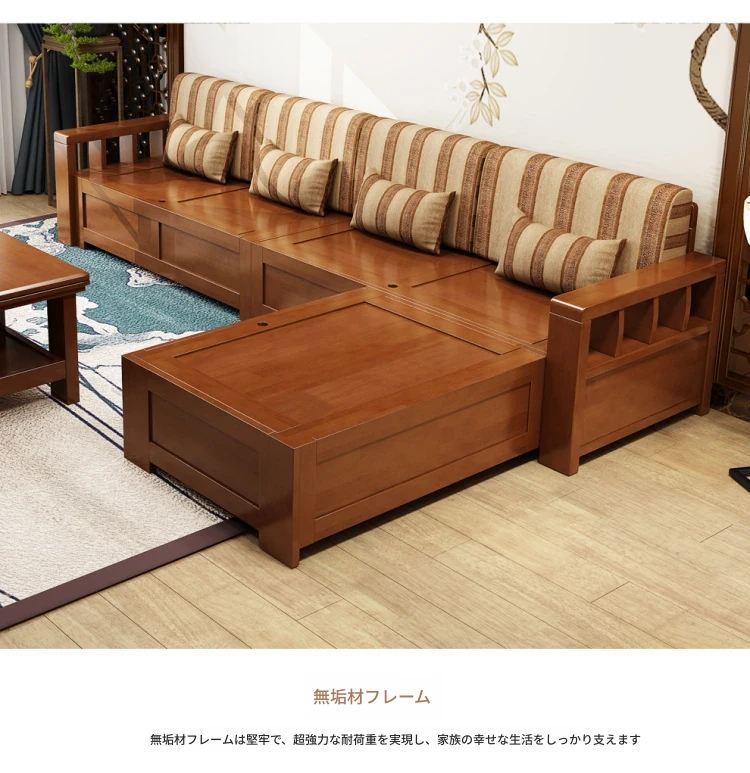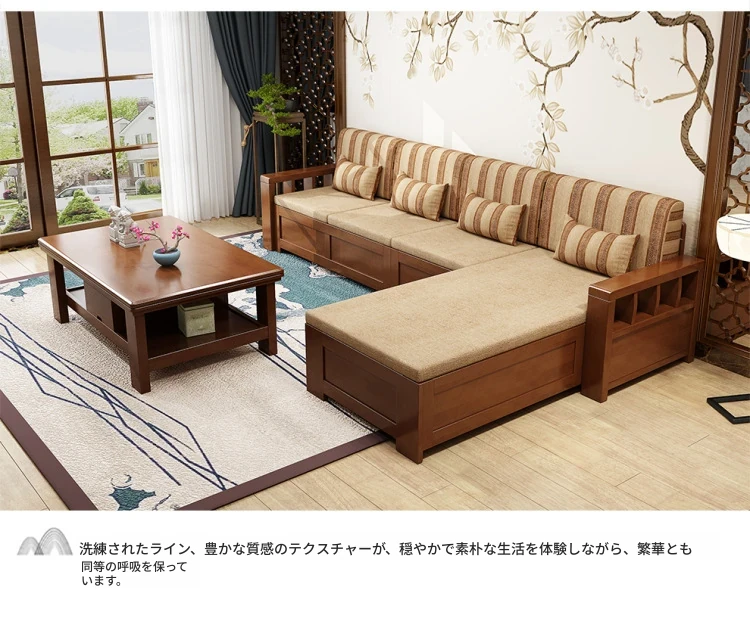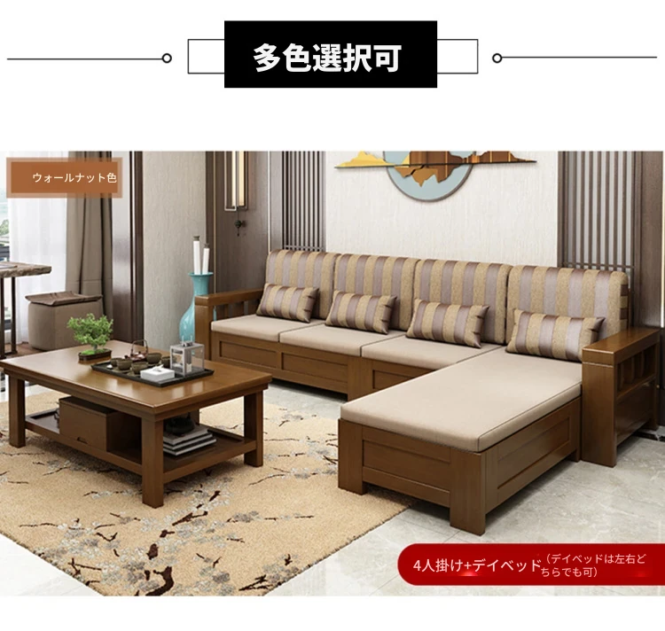 新中式デザインのソファー、金色のクルミ材を使用した実木製、モダンでシンプル!小型住宅にぴったりな貴妃型コーナー収納ソファ。おしゃれなリビング空間を演出します!
