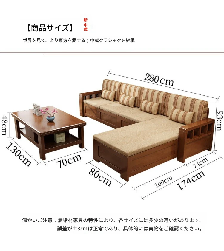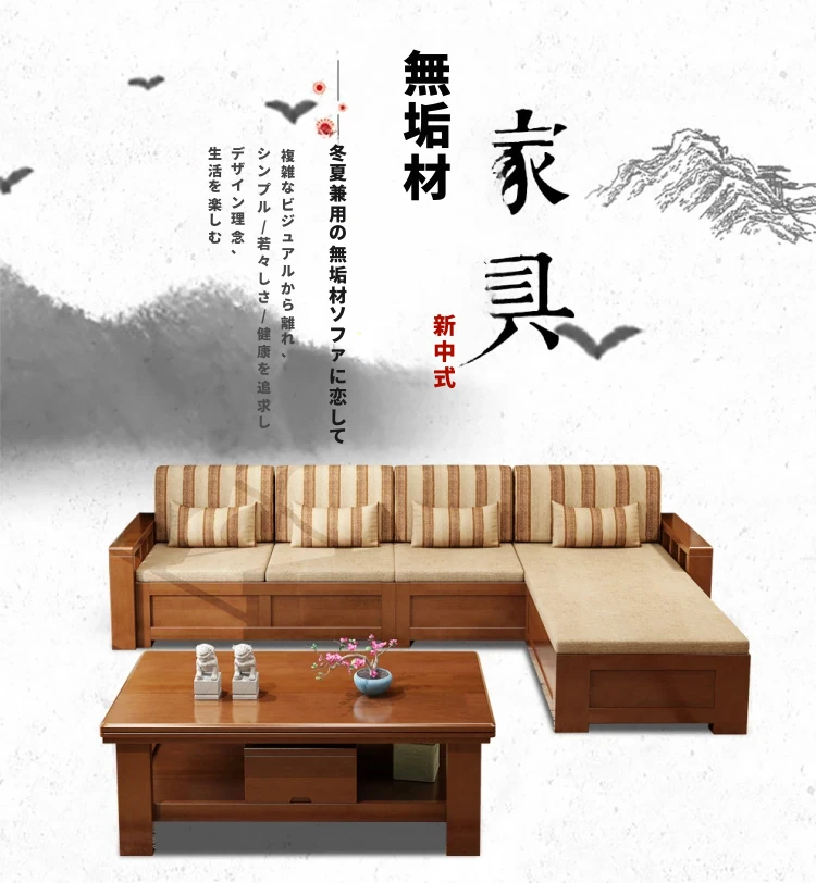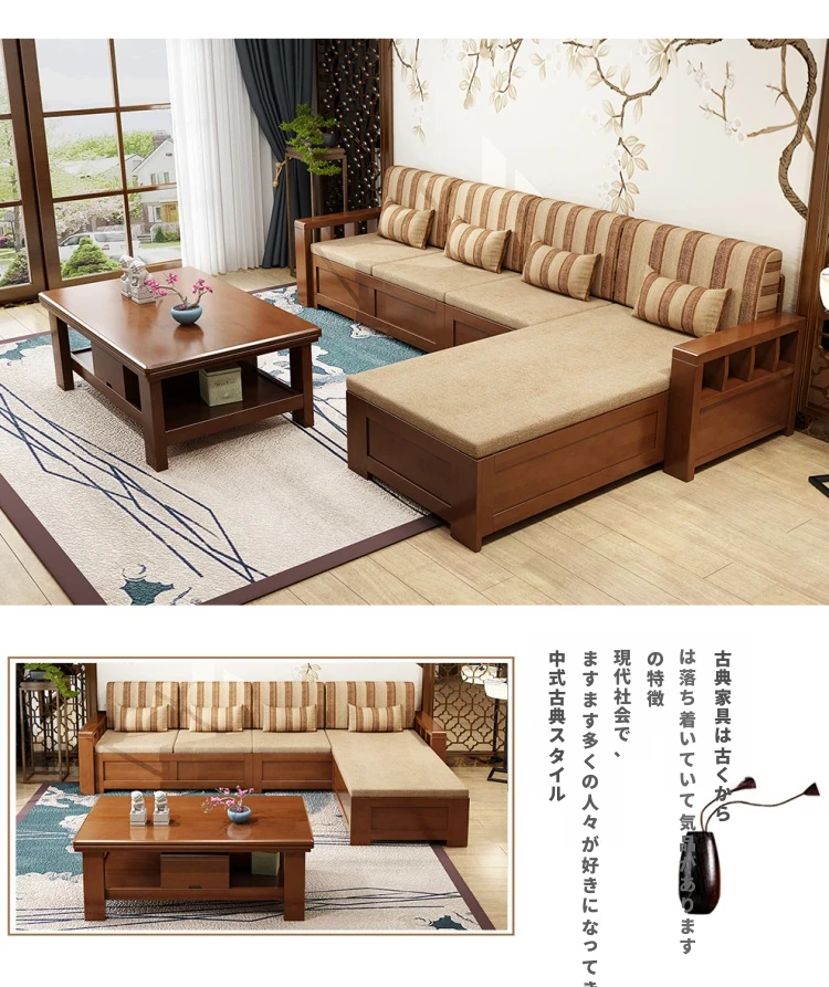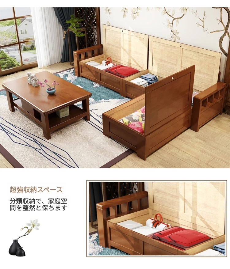 億拓の無垢材ソファー 小型経済型 モダンシンプル 新中式 コンビネーションリビングルーム用 組み立て式 冬夏対応 ストレージ家具【省スペースでおしゃれなデザイン】