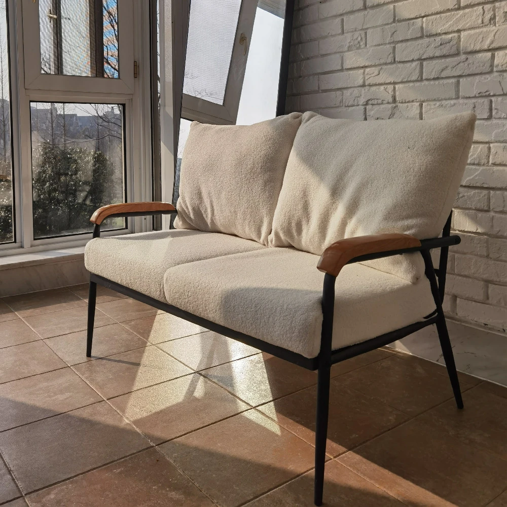 梵辰の和風ファブリックソファ - 小型リビングにぴったりな2人掛け・3人掛け、無垢材とアイアンのシンプルでモダンなコンビネーション家具!おしゃれで快適な空間を演出します。